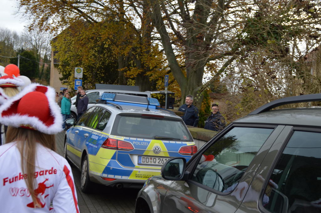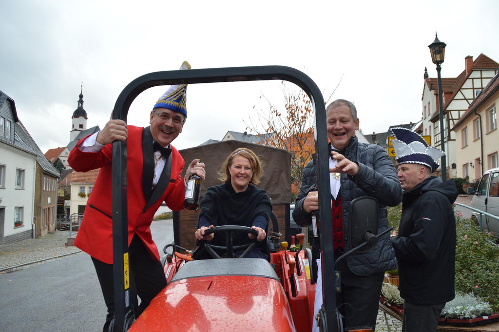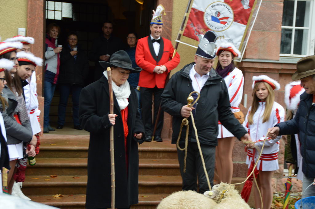 Weil der 11.11. in diesem Jahr auf einen Samstag fiel, musste der WCV seinen Ablauf zum Sturm auf das Wechslburger Rathaus ein wenig umstellen. Die Mitglieder des Vereins trafen sich schon etwas eher – dieses Mal in der Kegel- und Bowlinggaststätte „Gut Holz“, um sich so richtig auf Fasching einzustimmen. Gegen 10:15 Uhr sind wir dann von dort mit einem Zug durch die Gemeinde gestartet. Angeführt wurde der Zug durch ein festlich geschmückten Musik-Wagen. Außerdem war in diesem Jahr auch ein Traktor nebst Anhänger mit Schafen von unserem „Noch“-Prinzenpaar Grit und Tilo Grahm mit dabei. Stationen waren unter anderem die Läden von Gerd Zillmann, Gabi Vollstädt, Torsten Knorr und Beate Weinrich.