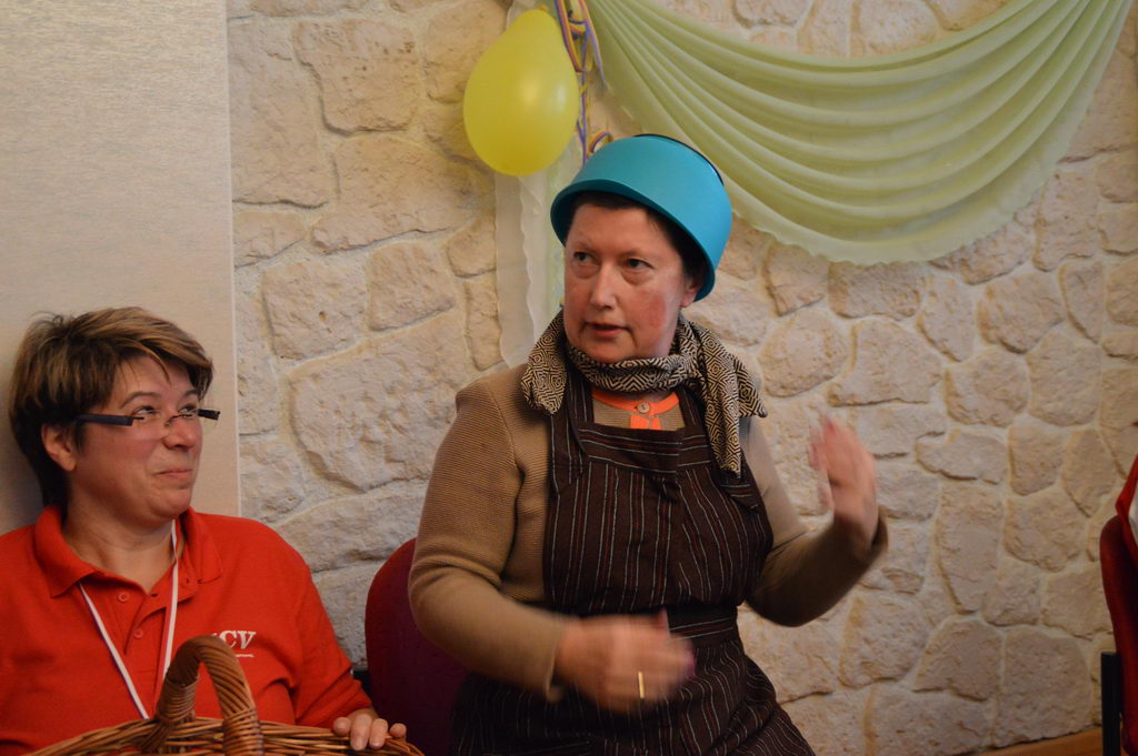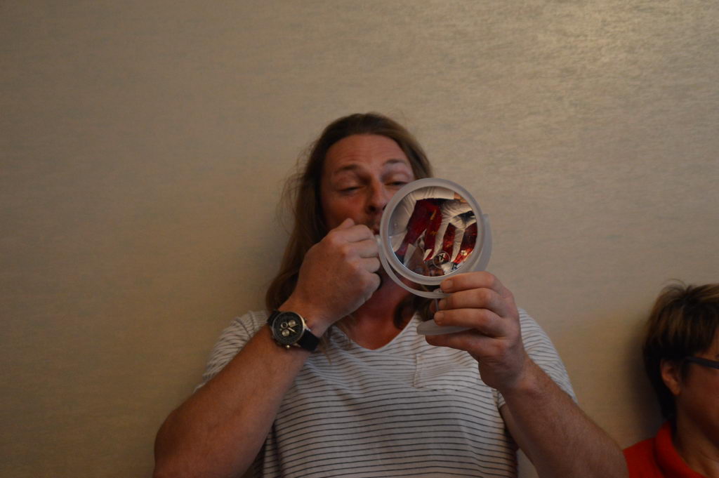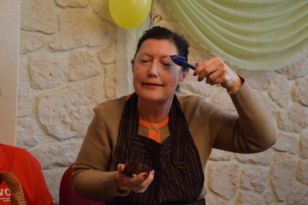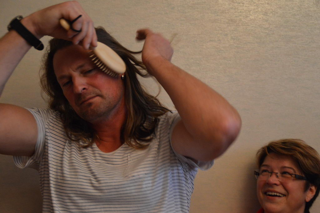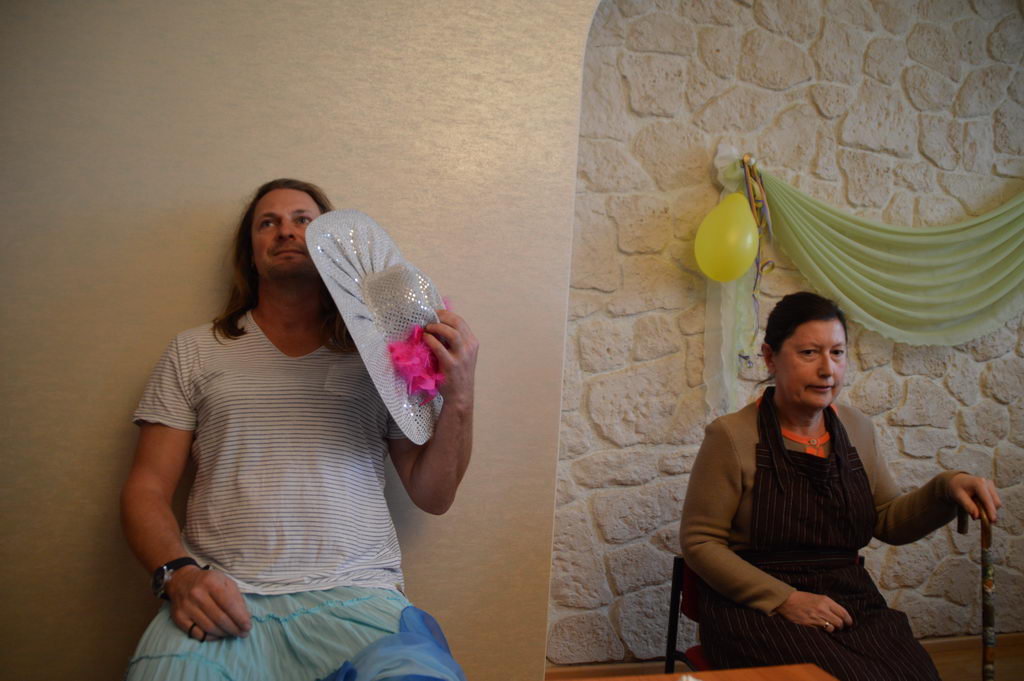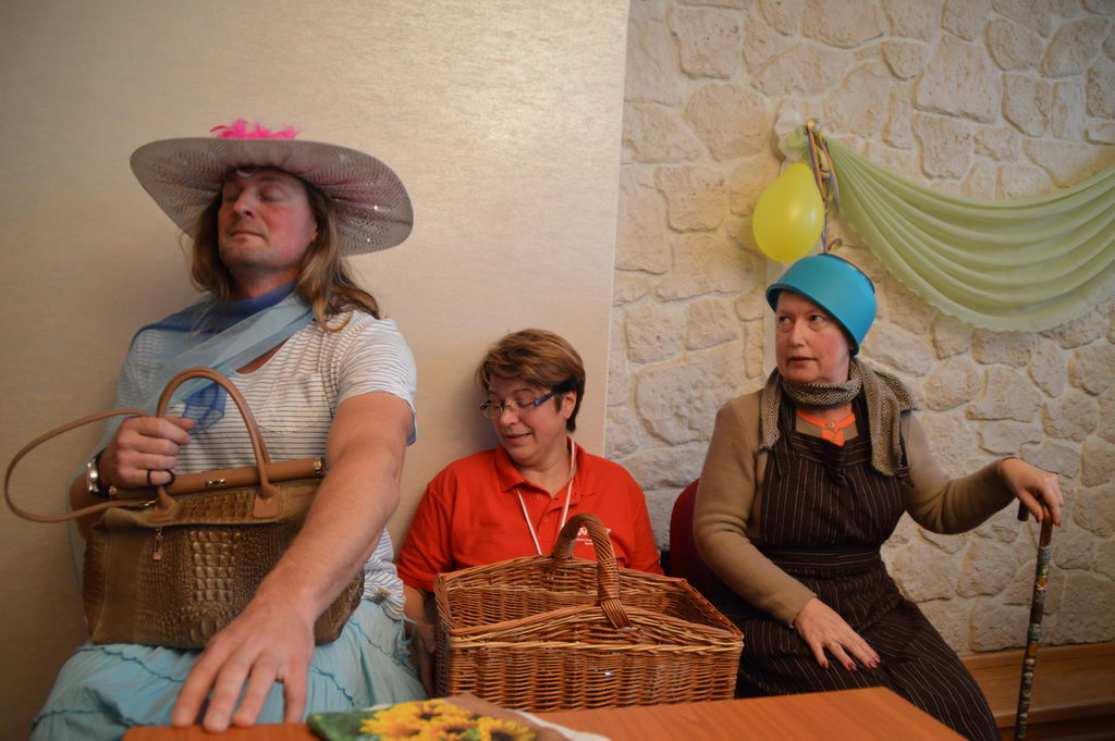Weiter ging es dann im Rathaus mit einer ersten öffentlichen Ratssitzung der fünften Jahreszeit. So einen vollen Ratssaal haben wir zum 11.11. lange nicht gesehen. Es waren nicht nur über 40 Vereinsmitglieder, sondern auch zahlreiche Wechselburger Bürger ins Rathaus gekommen. Hierzu hatte sich die Gemeindeverwaltung wieder etwas einfallen lassen. Frau Naumann kündigte einen Intercity von Berlin in Richtung Wechselburger Hauptbahnhof an. Die einzigen Mitreisenden waren Bettina Voigt und Jens Gerstenberger. Diese versuchten sich gegenseitig im Schminken zu übertreffen. Jens Gerstenberger als Diva und Bettina Voigt als eher einfache Bäuerin mit ihren Mitteln. Also zum Beispiel verwendete sie anstatt Lippenstift Tomatenmark. Die Überraschung dieses Auftrittes war, welche schauspielerischen Leistungen in Jens Gerstenberger bis jetzt für uns ungenutzt schlummerten.