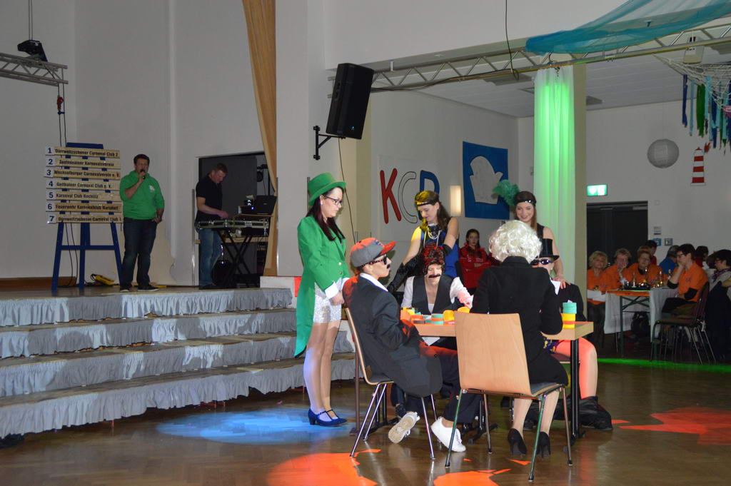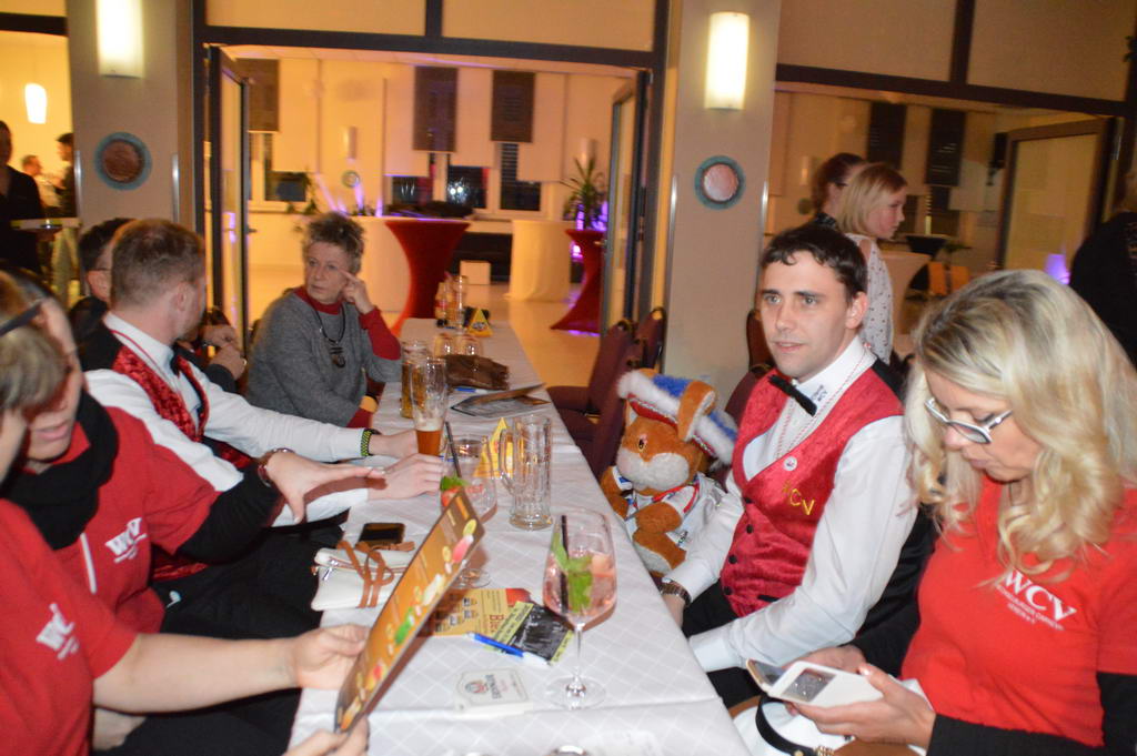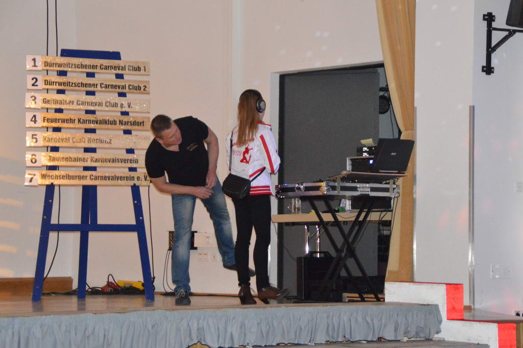 Angetreten waren sieben Mannschaften aus sechs Vereinen (Dürweitschen kam mit zwei Garden zum FunkenCup). Für unseren Verein war unser Vieze Silvio Dost als Kampfrichter in der Jury. Er hatte für unsere Funkengarde den dritten Platz gezogen bzw. ertrunken. Den jedes Jurymitglied musste ein Glas Tequila trinken, auf dessen Boden die Startnummer der Mannschaft abzulesen war. Weil Tequila nichts für unseren Silvio ist, gab es extra für ihn ein Glas Kirchlikör zum Nachspülen.