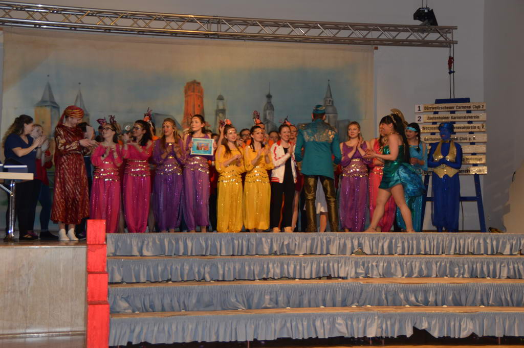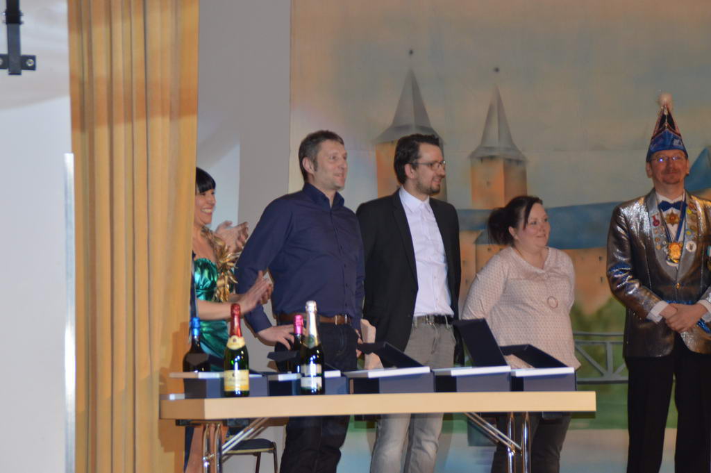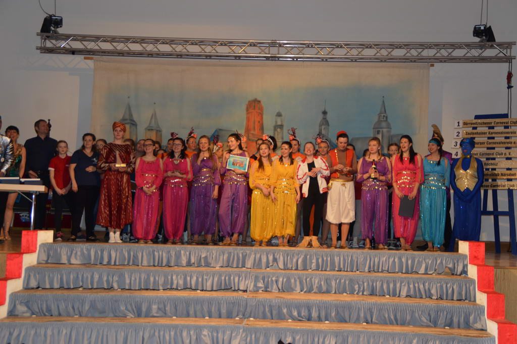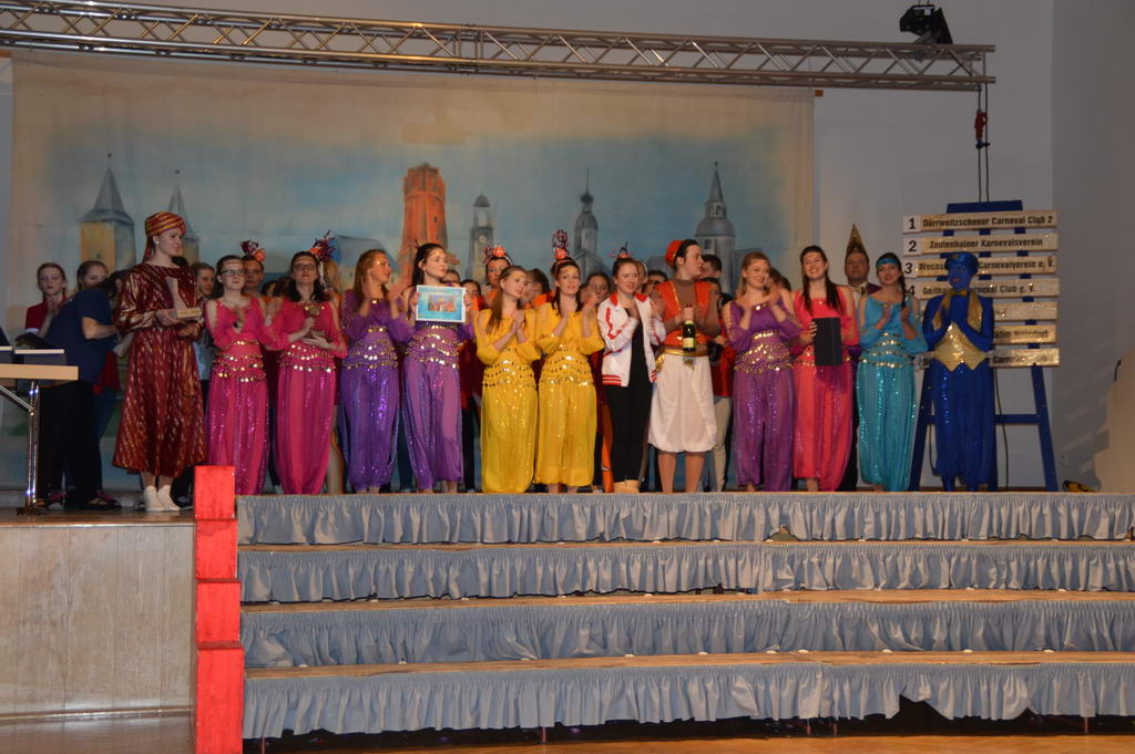 Nachdem unsere Funkengarde ihren Auftritt absolviert hatte, hatten wir durch Mitrechnen ganz schnell herausgefunden, dass unsere Mädchen vorerst einmal in der "Sieger-Box" platznehmen mussten. Zumindest nach dem internen Mitrechnen war dies auch bis zum Ende so. Nur, hatten wir uns vielleicht doch verrechnet? Wie schon gesagt, nach endlos scheinenden Tanzrunden kam es zur Siegerehrung. Und wirklich: Unsere Funkengarde konnte den Titel vom vergangenen Jahr erfolgreich verteidigen. Super!