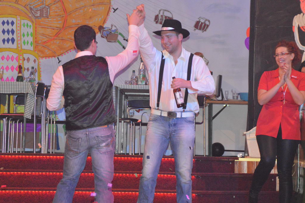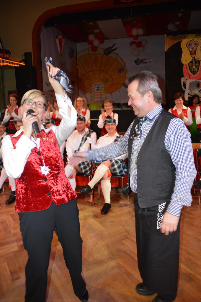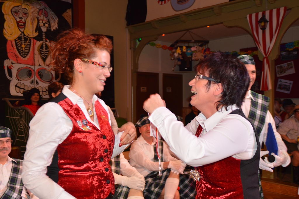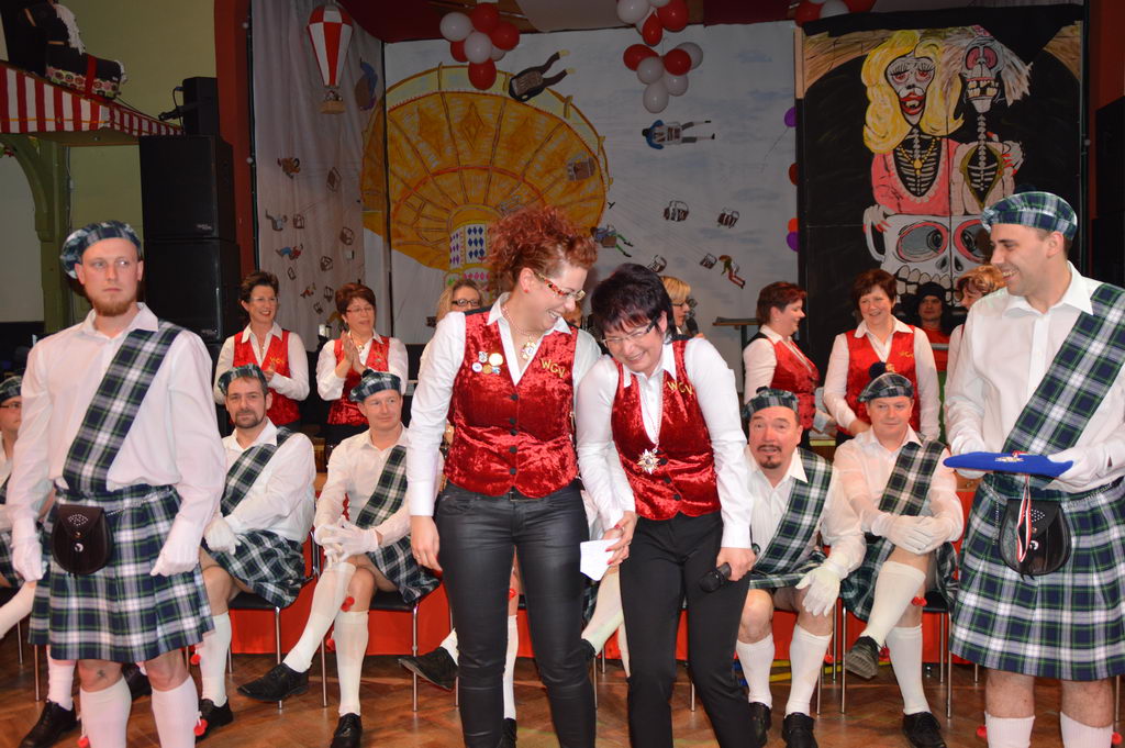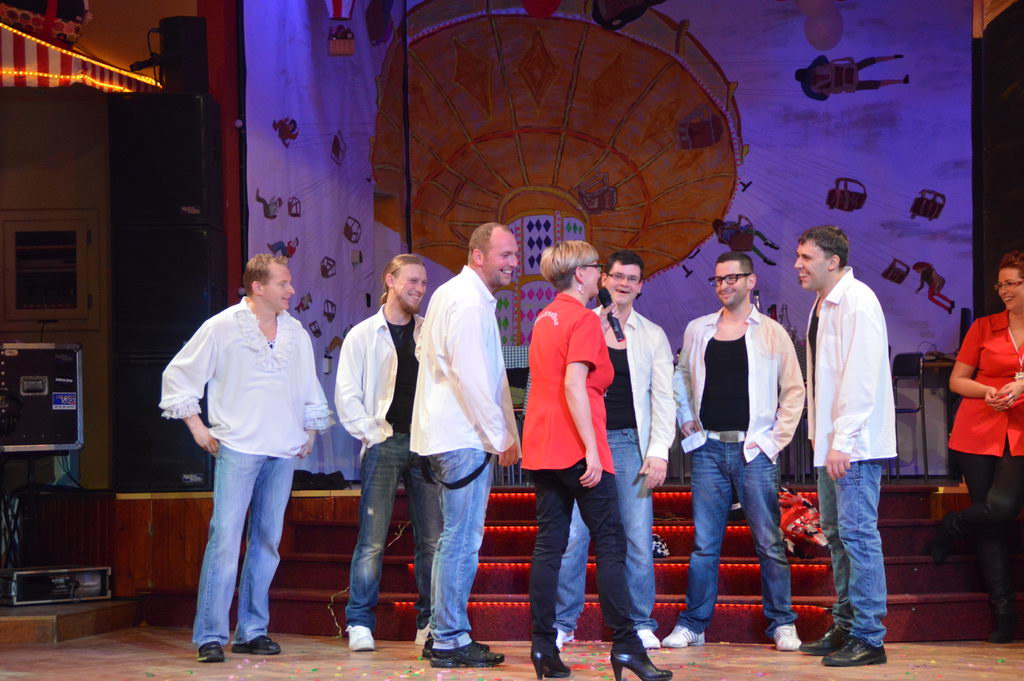 vorgestellt. Prinz Anjo verlas den anwesenden Weibern die Regeln für den heutigen Abend. Bei der anschließenden Ordensverleihung wurd Conny Jänsch für würdig befunden, den höchsten Orden des Weiblichen Elferrates zu tragen. Den Abschluss dieses ersten Teiles des 12. Weiberfaschings bildete der Tanz der männlichen Garde. Gleich darauf belagerten die närrischen Weiber die Tanzfläche, bis es wieder hieß "Schnee, Berge, eine Hütte, …".