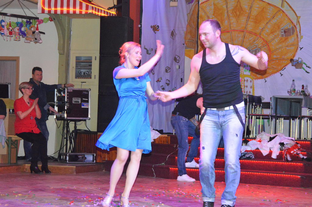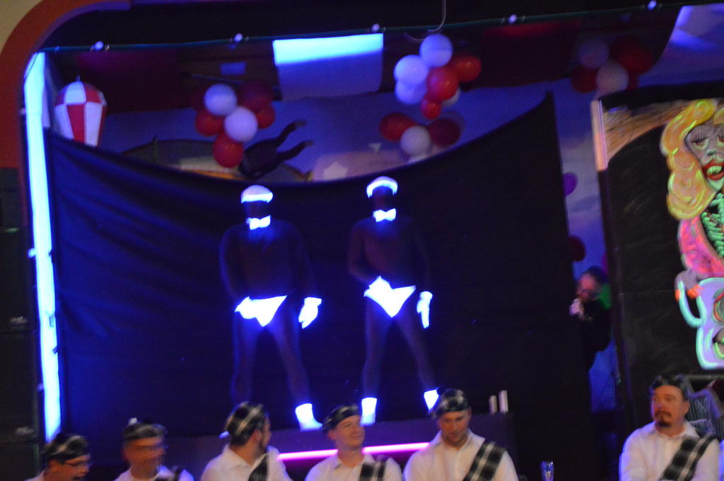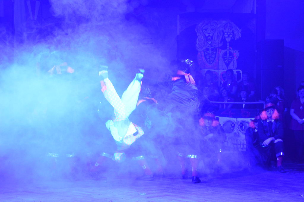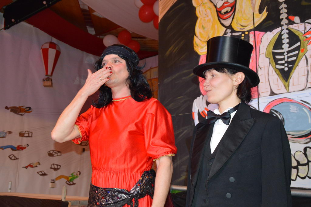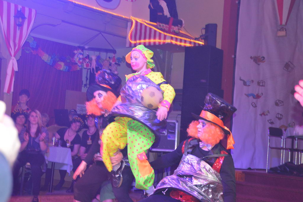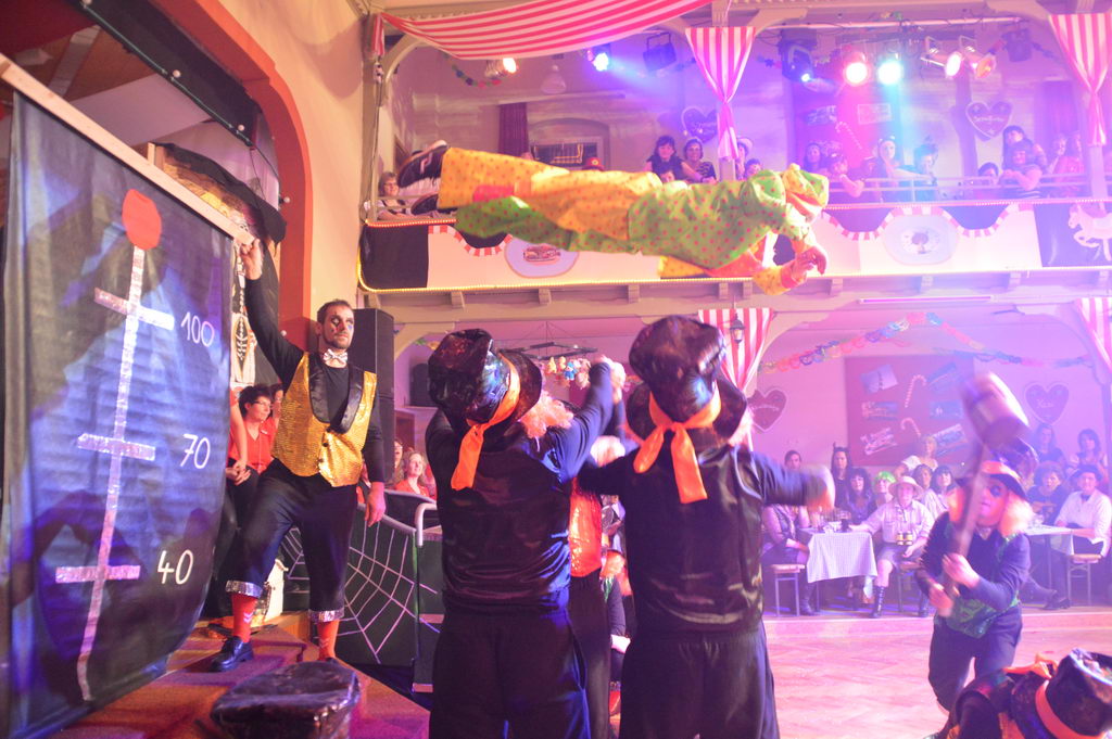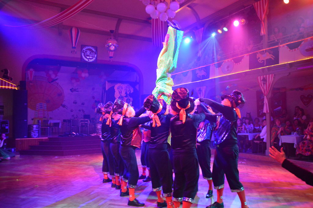 Und zum Anderen war es genau die akrobatische Leistung von Lukas, der zu allen Veranstaltungen die Besucher (und die Vereinsmitglieder) beeindruckte. Immerhin hat er auch nach reichlich blauen Flecken wärend der Trainingszeit in der Vorbereitung auf den Fasching nie den Mut und das Vertrauen verloren, dass er den bzw. die Auftritt(e) unverletzt übersteht.