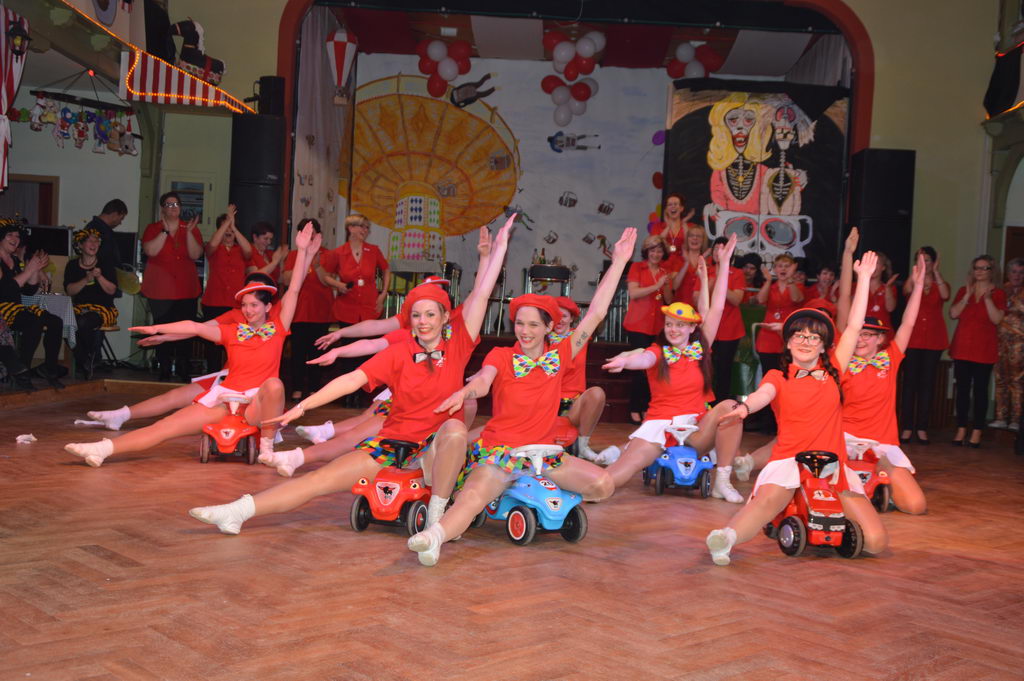 Der erste Auftritt wurde von der Funkengarde gestaltet. Diese vermischten den Gardetanz der 45. Saison ("Dshingis Khan") mit dem Showtanzauftritt ("Autoscooter"). Den Einmarsch und Teile des Gardetanzes absolvierten die Mädchen auf "Bobby-Cars". Es war eine toll gelungene Überraschung.