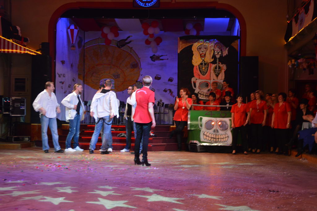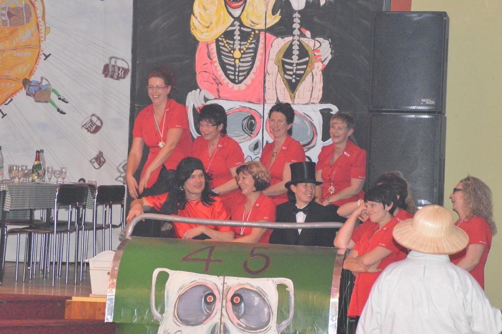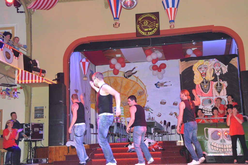 Zwölf mal Weiberfasching beim WCV, das heißt auch zum zwölften Mal verdrehte Welt in Wechselburg. Um es aber gleich vorwegzunehmen: Eins war diesesmal anders. Es sollte erstmals keinen Stripper geben. Die letzten Jahre hatten wir Stripper der unterschiedlichten Art erlebt. Von 'topp' bis 'nicht ansehbar' war alles vertreten. Doch den Ausschlag für diese Entscheidung hat überwiegend das Verhalten des Publikums in den letzten Jahren beim Auftritt des Strippers gegeben. Sobald dieser angekündigt wurden, leerten sich die Sitzplätze rund um die Tanzfläche - also genau die Plätze, aus denen sich die Stripper ihre 'Mitmach-Akteure' auswählten. Ansehen wollten sich den Auftritt einige, aber mitmachen wollte kaum eine. Für künftige Veranstaltungen sollten die anwesende Weiberschar selbst eine Entscheidung fällen. Alle, die künftig einen Stripper sehen wollen, sollten ihre Eintrittskarte in einen vorbereiteten Briefkasten werfen. Egal, wie am Ende die eingeworfene Anzahl von Stimmzetteln zustande gekommen ist. Es waren etwas mehr als 60 'Dafür'-Stimmen bei insgesamt 240 anwesenden Stimmberechtigten im Saal.