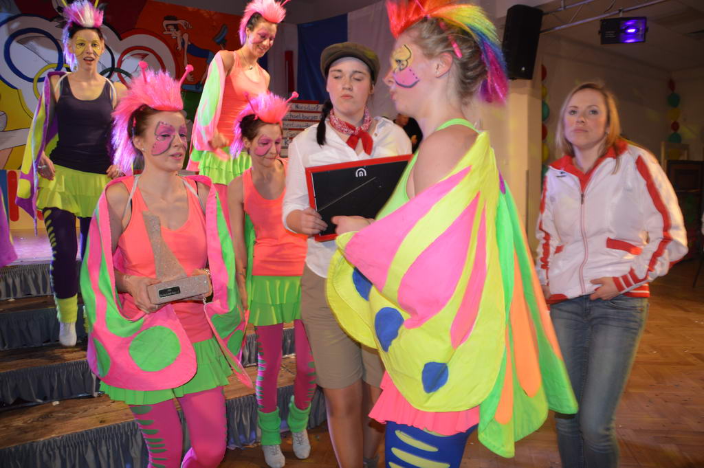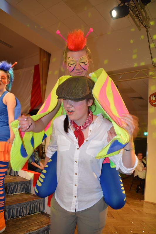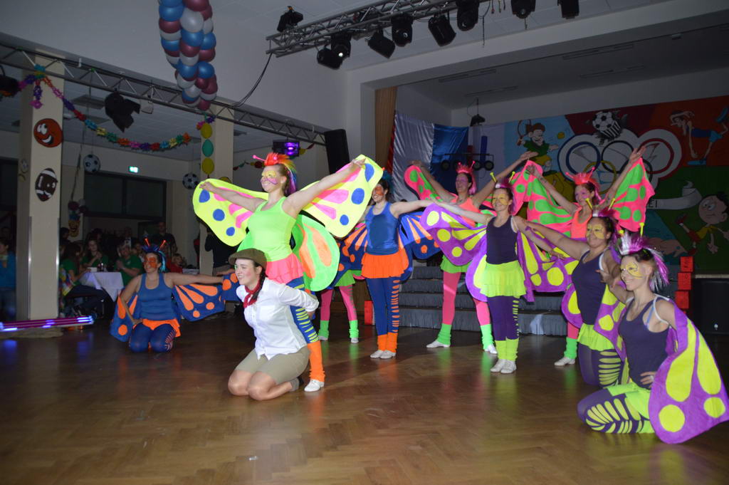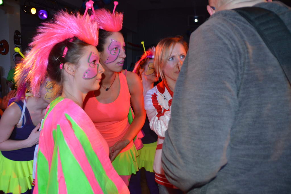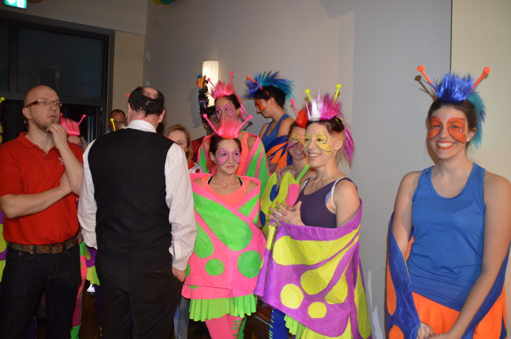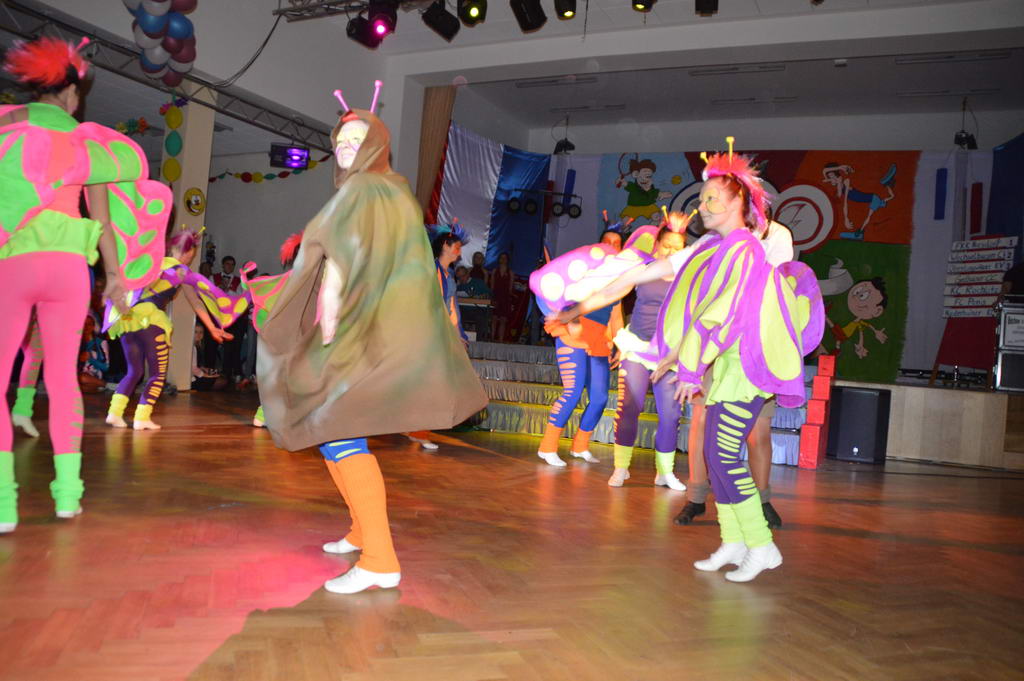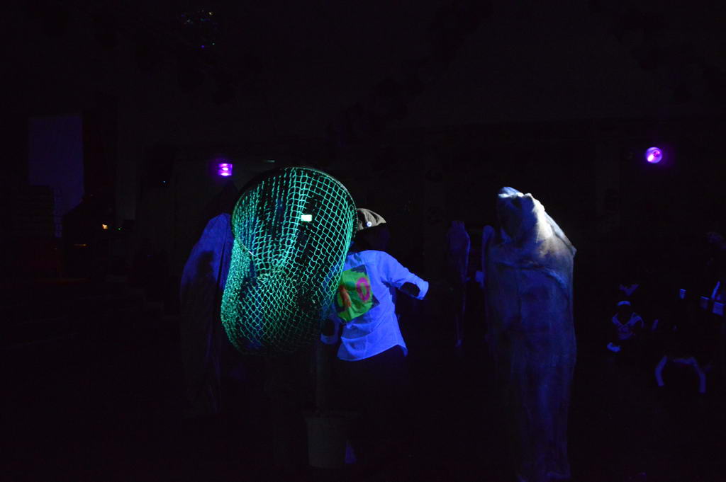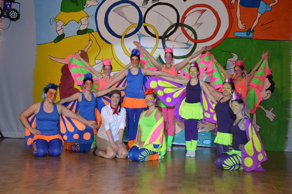Vor dem Start unserer Mädchen wurde im Saal extra noch zusätzliche Schwarzlicht-Strahler aufgebaut. Der durchs Programm Führende bemerkte dazu, dass unser Schwarzlicht wahrscheinlich dunkler ist als das, welches im Bürgerhaus installiert ist. Aber unabhängig davon war es einfach wichtig, dass der Wow-Effekt beim "Schlüpfen" der Schmetterlinge auch so richtig zur Geltung kommt.
