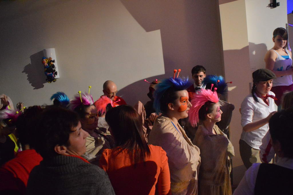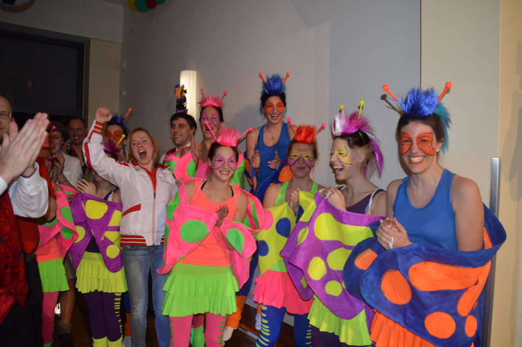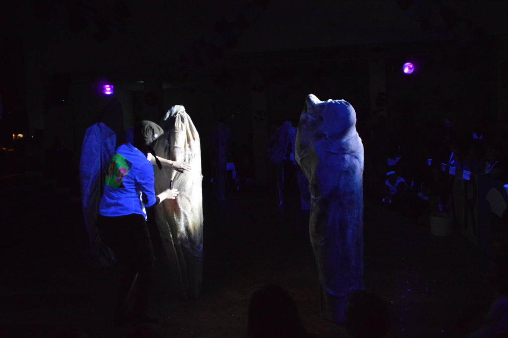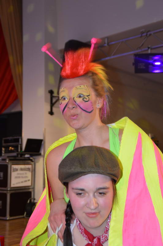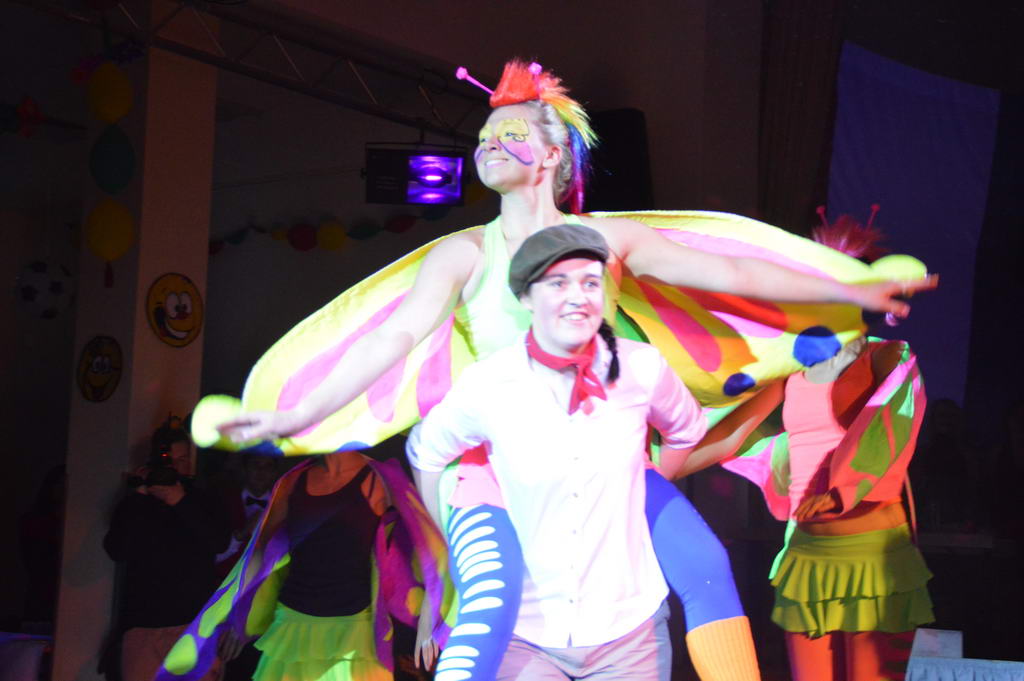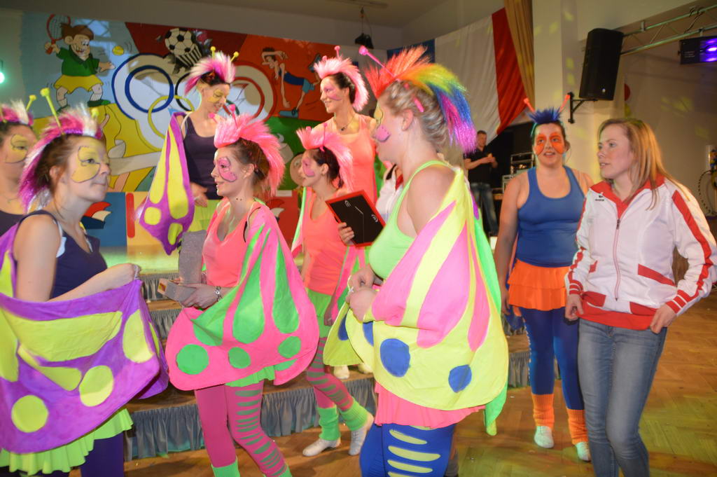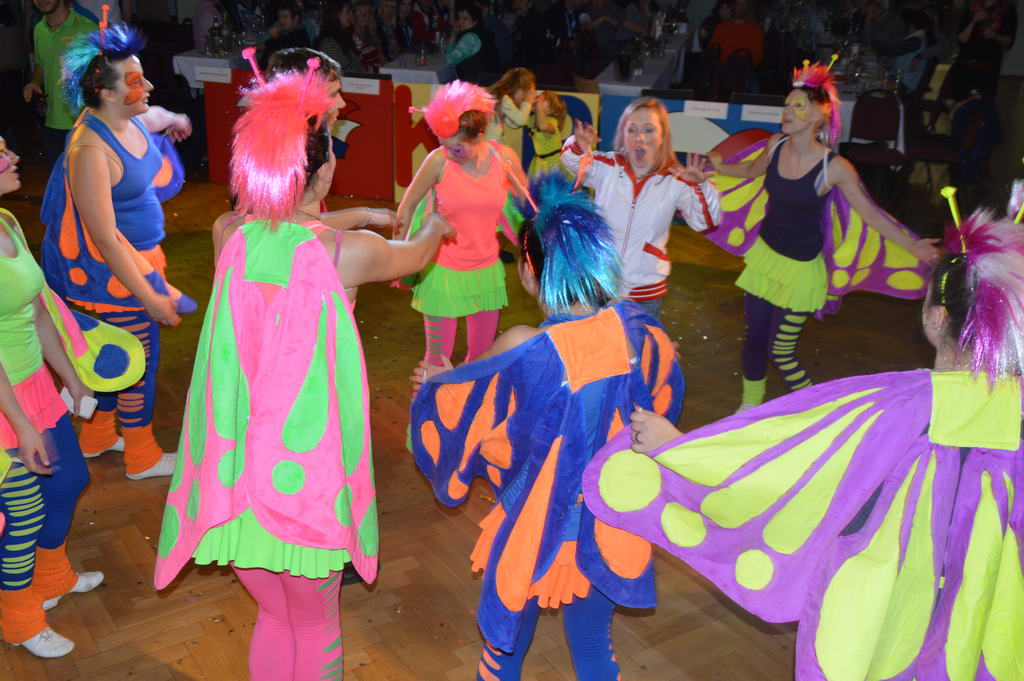 Vor dem Start unserer Mädchen wurde im Saal extra noch zusätzliche Schwarzlicht-Strahler aufgebaut. Der durchs Programm Führende bemerkte dazu, dass unser Schwarzlicht wahrscheinlich dunkler ist als das, welches im Bürgerhaus installiert ist. Aber unabhängig davon war es einfach wichtig, dass der Wow-Effekt beim "Schlüpfen" der Schmetterlinge auch so richtig zur Geltung kommt.