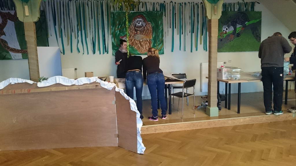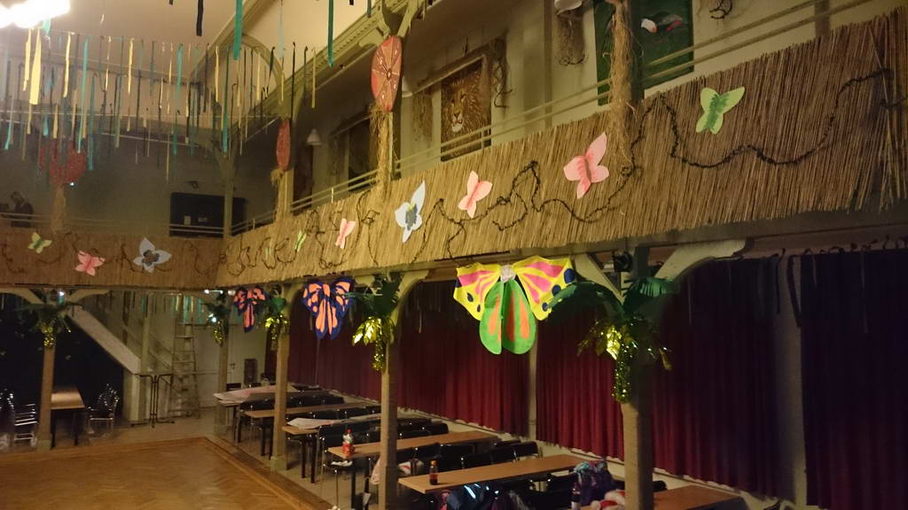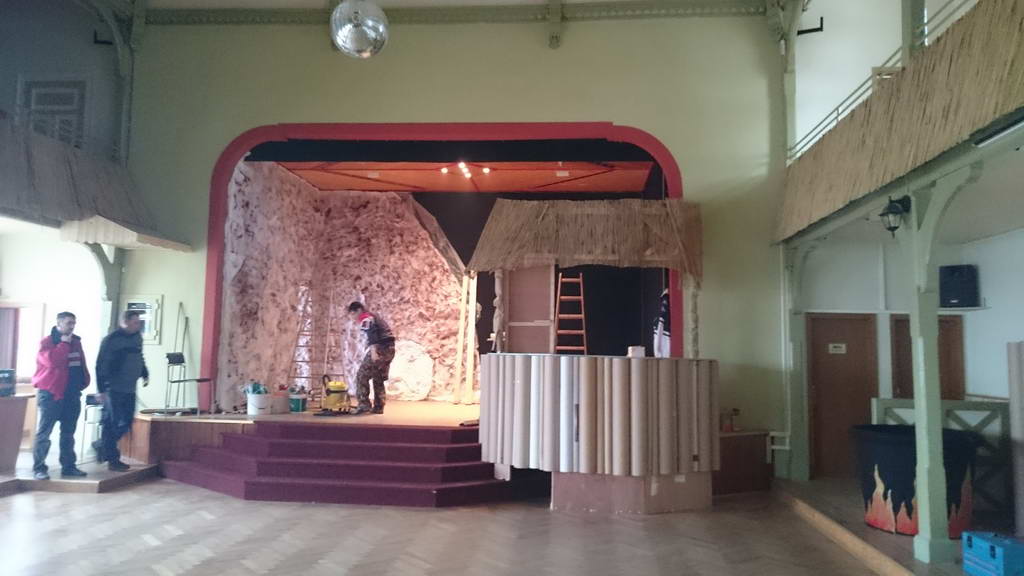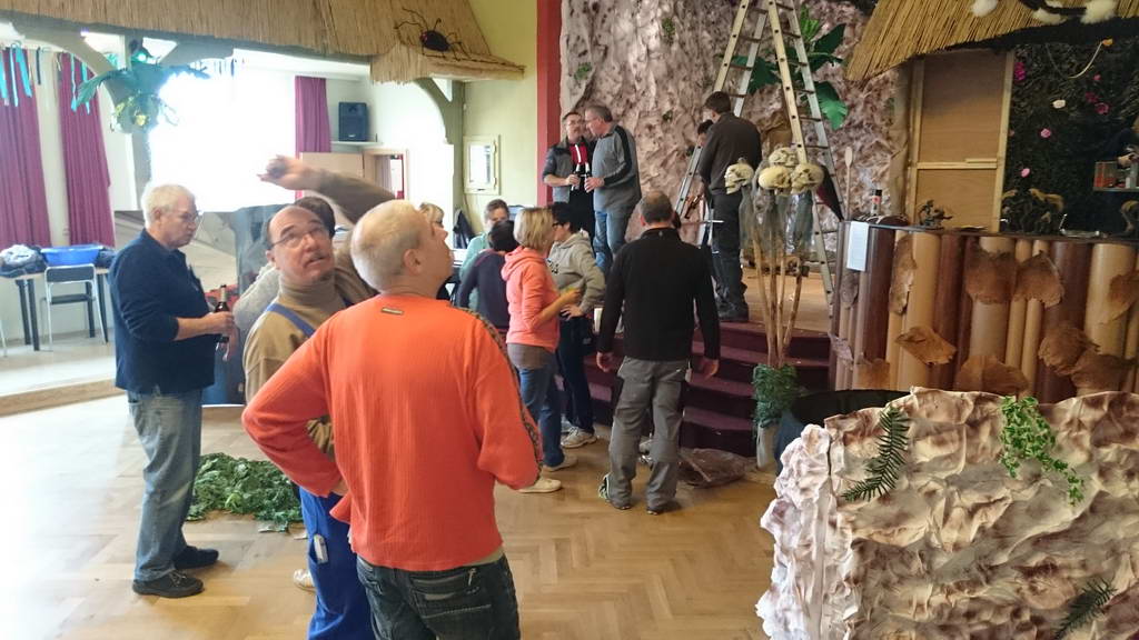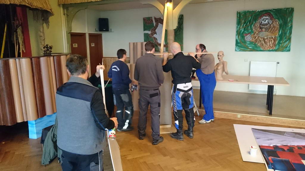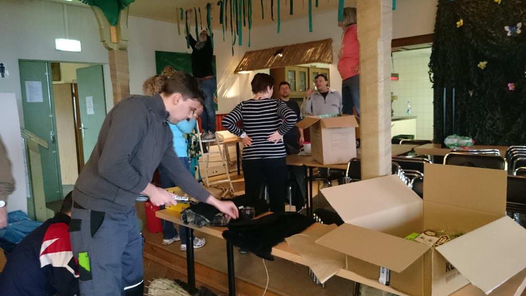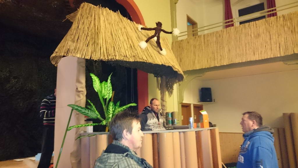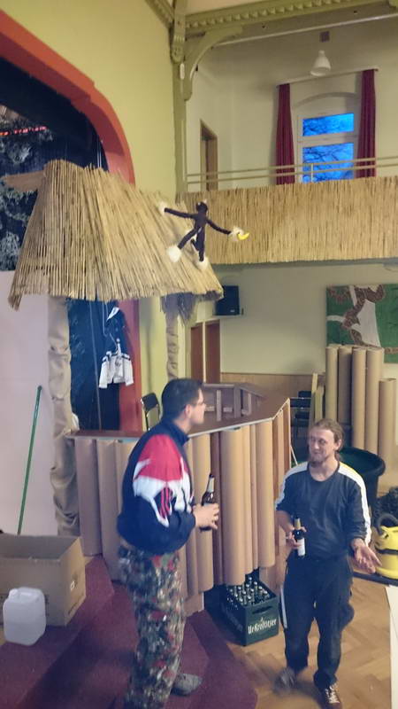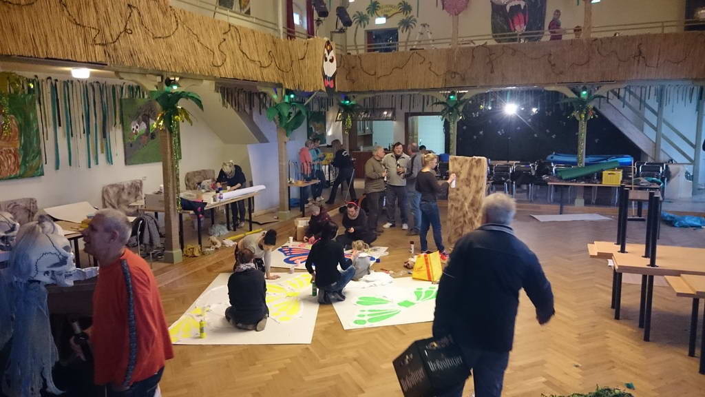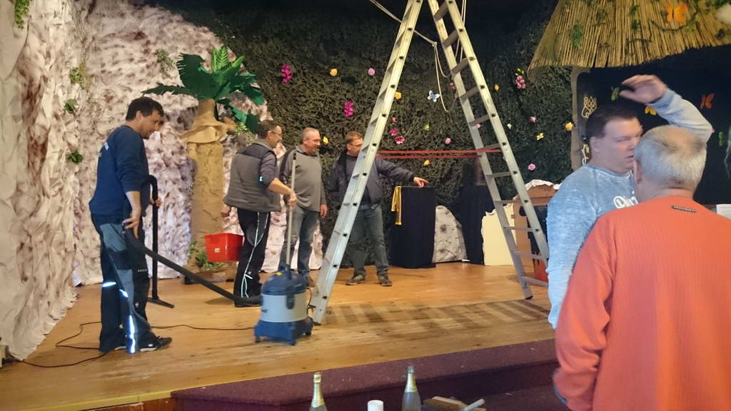 Erfreulich rege war die Beteiligung der Vereinsmitglieder dann zu den beiden Aufbausamstagen. Damit konnte erreicht werden, dass alles Gewünschte rechtzeitig zum Faschingsbeginn fertig ist. Und das bezog sich sowohl auf die Bühne, die Saaldekoration als auch auf die vielen notwendigen Requisiten.