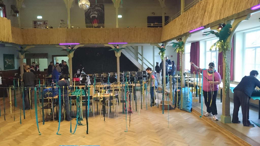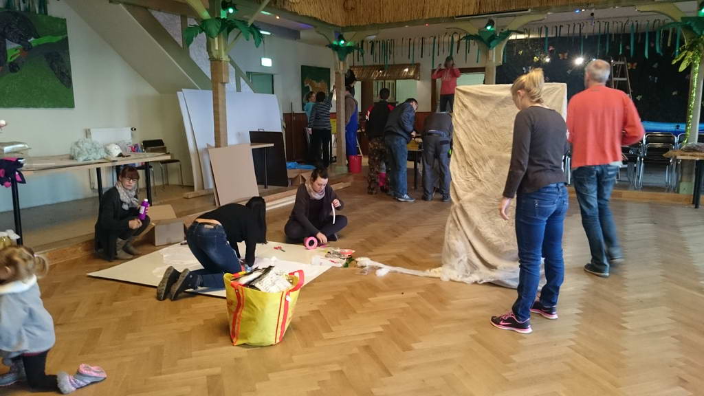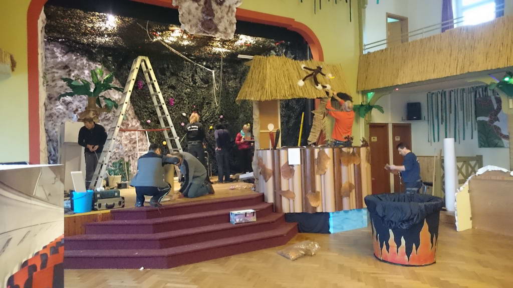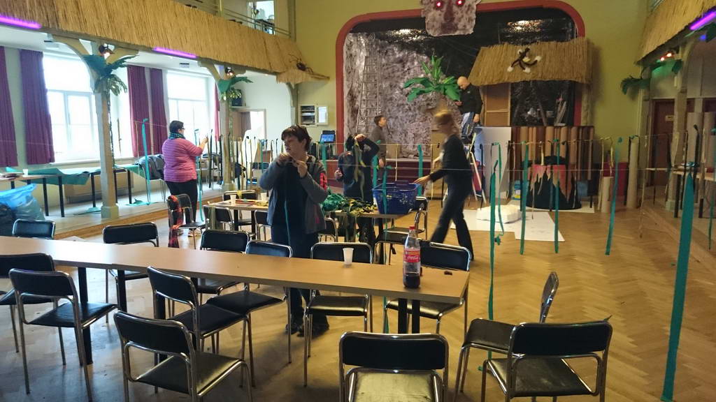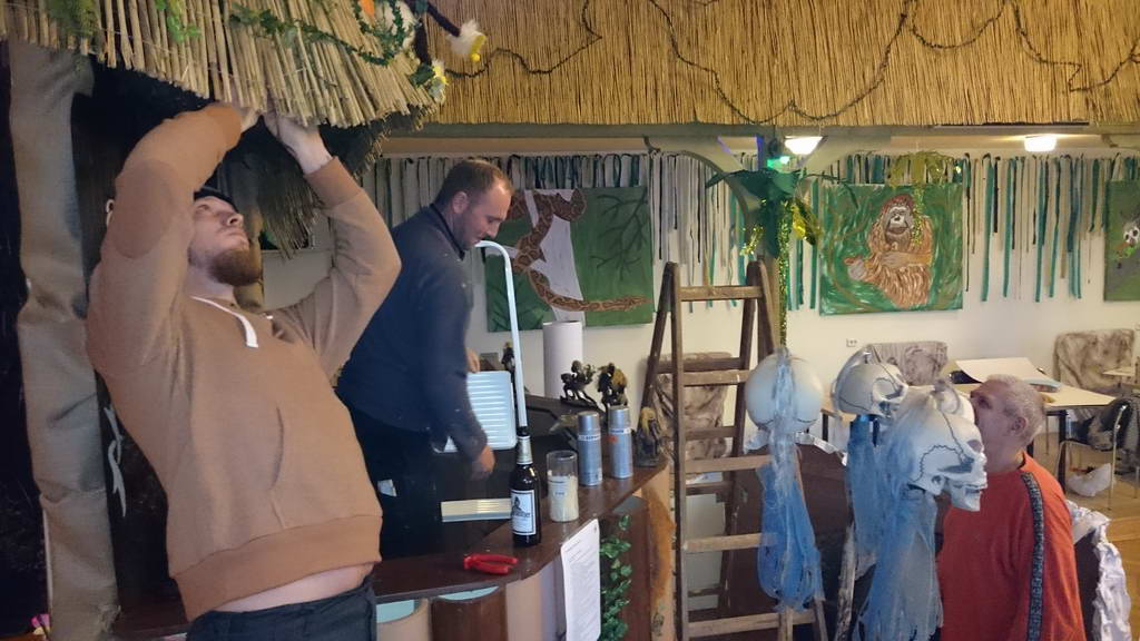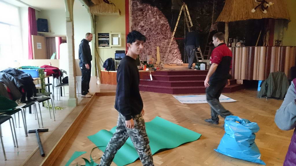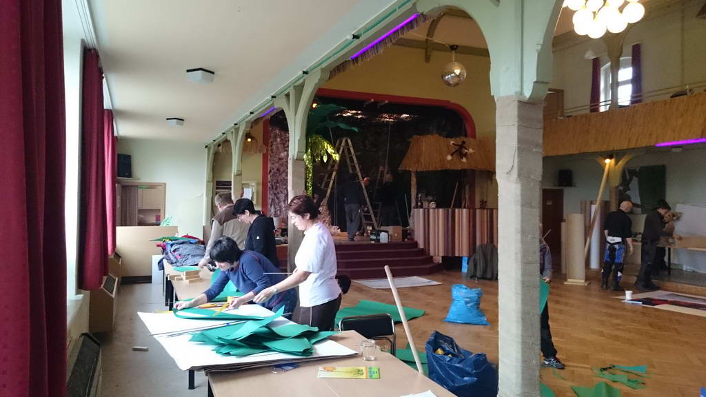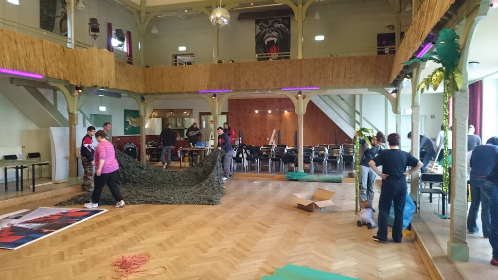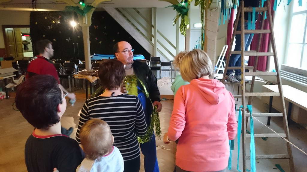 Erfreulich rege war die Beteiligung der Vereinsmitglieder dann zu den beiden Aufbausamstagen. Damit konnte erreicht werden, dass alles Gewünschte rechtzeitig zum Faschingsbeginn fertig ist. Und das bezog sich sowohl auf die Bühne, die Saaldekoration als auch auf die vielen notwendigen Requisiten.