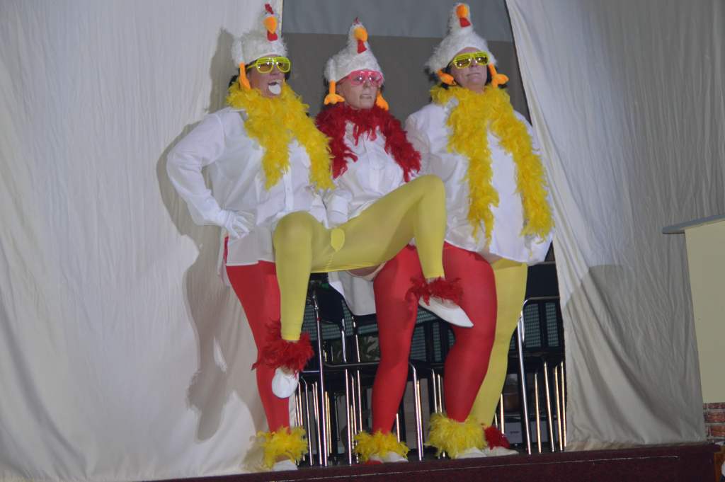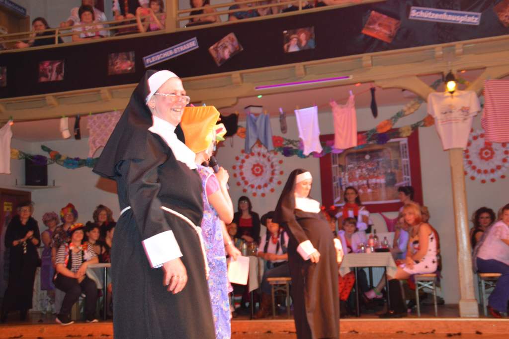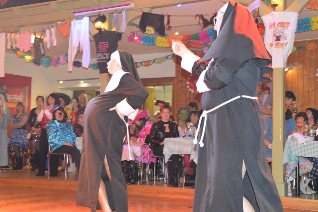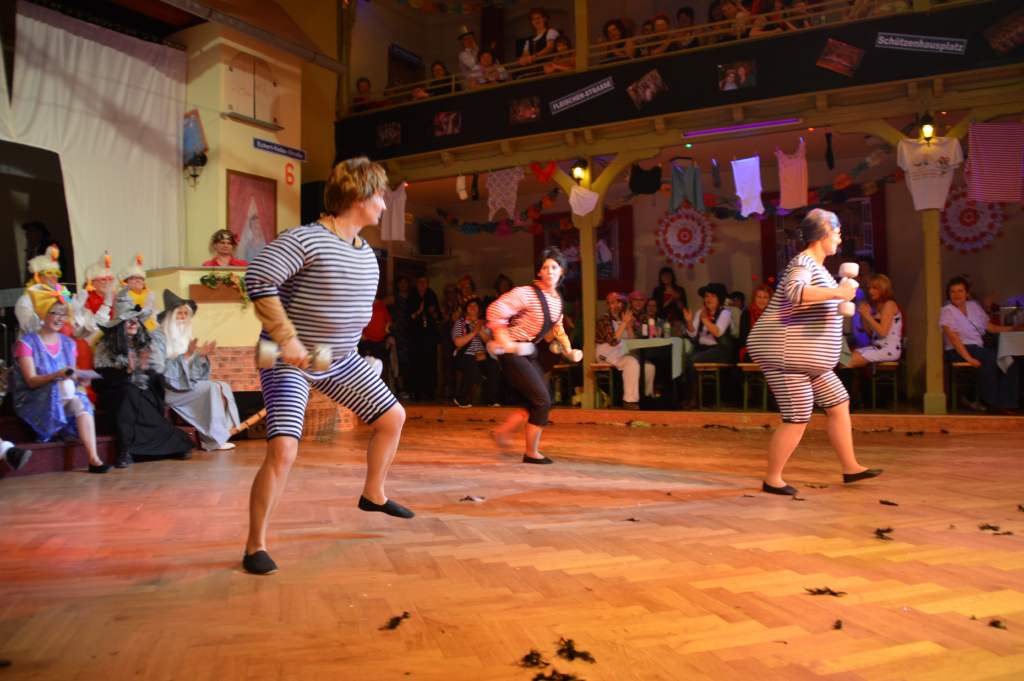 Da ich als Schreiber dieser Zeilen nicht auf Erfahrungen mit Weiberfaschingsveranstaltungen bei anderen Vereinen verfüge, muss ich mich auf Erzählungen von Frauen mit einschlägigen Erfahrungen stützen. Aber vor allem unser Konzept mit den vertauschten Rollen hebt uns scheinbar von anderen Veranstaltungen dieser Art ab. Auf jeden Fall freuen wir uns, dass wir in den vergangenen zehn Jahren ein so treues Stammpublikum haben.