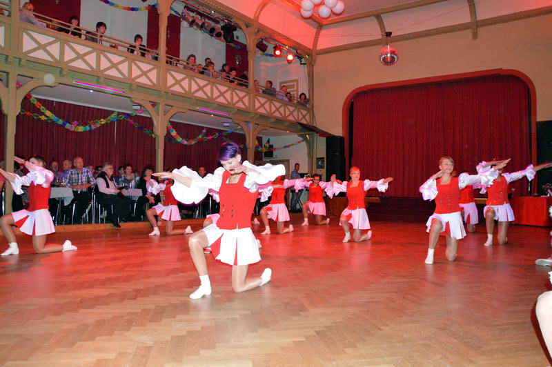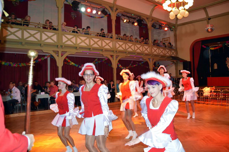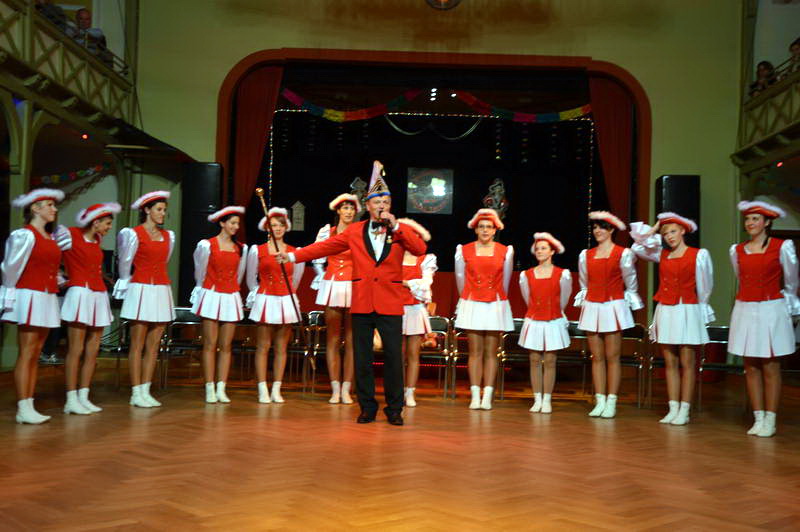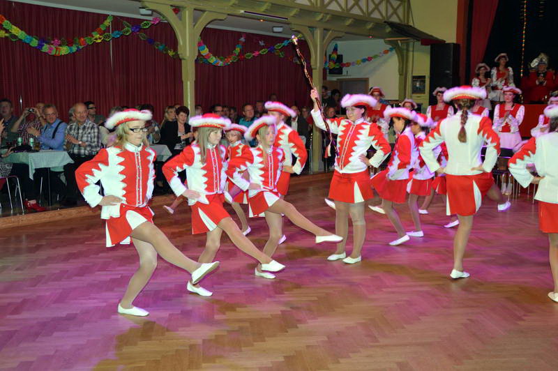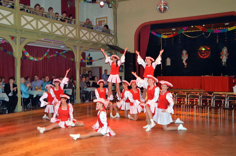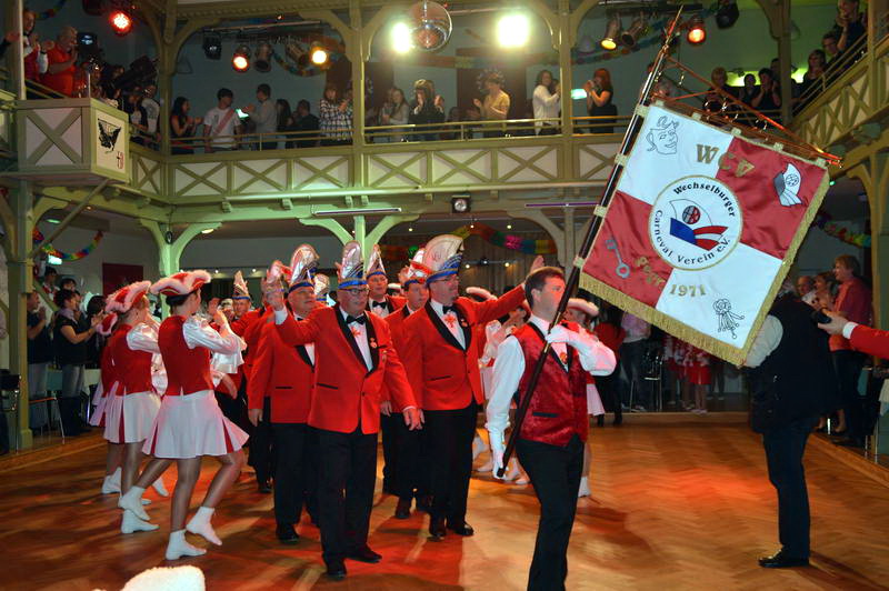 Der zweite Auftritt wurde durch die Funkengarde des WCV bestritten. Mit ihrer Darbietung stellten sie unter Beweis, welchen sportlichen und künstlerischen Fortschritt sie in den letzten Jahren unter der Leitung von Jessika Pester gemacht haben. Selbst Kleinigkeiten blieben nicht unberücksichtigt. Egal, ob es die streng geflochtenen Zöpfe (damit keine Haare mehr ins Gesicht fallen können) oder die sehr auf Einheitlichkeit getrimmte Kosmetik war. Am Meisten aufgefallen waren natürlich die tänzerischen Fortschritte. Beim eingesprungenen Spagat hielten die Zuschauer spürbar den Atem. Es hat einfach alles gepasst und das Publikum dankte es mit entsprechendem Applaus.
