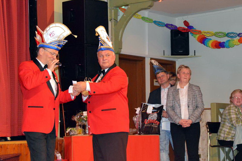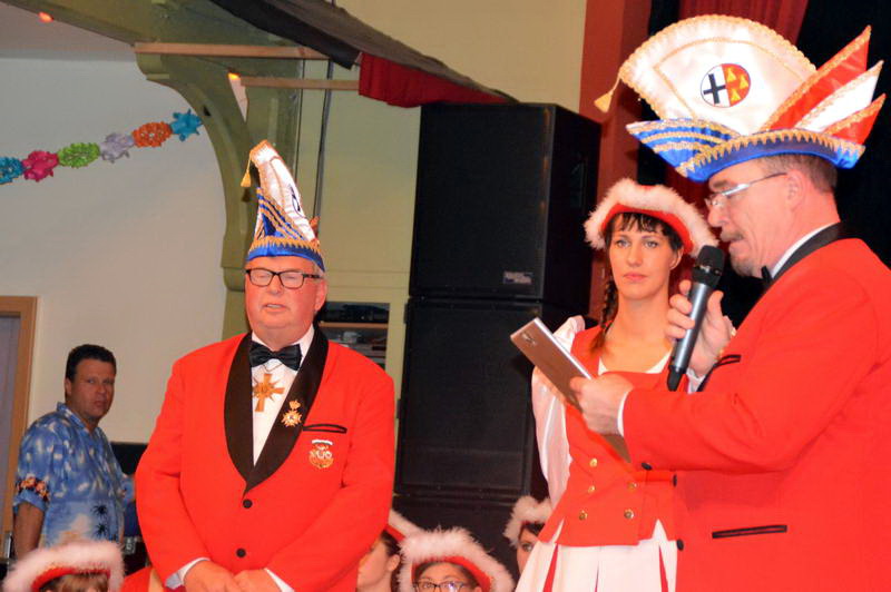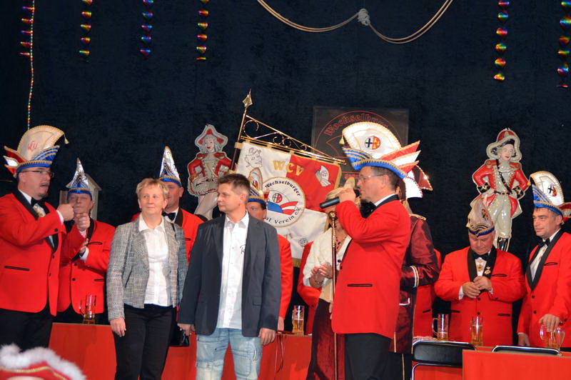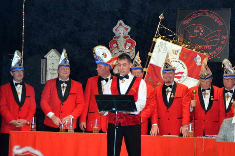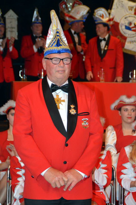 Als Höhepunkt erhielt Klaus-Peter Ziemann den Orden für seine 40-jährige aktive Mitarbeit im WCV. Dazu wurde in einer Laudatio vom Vereinspräsidenten Udo Modes an die vielen Aufgaben, Funktionen und Auftritte erinnert, die Klaus-Peter in seiner 40-jährigen Tätigkeit für den und im Verein inne hatte. Bei dieser Ehrung ließ es sich der Elferrat natürlich nicht nehmen, dem Jubilar in aller Öffentlichkeit zu gratulieren.
