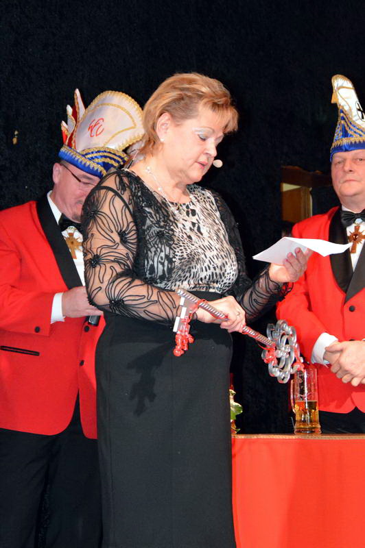 durch die kommende Saison begleiten werden. Als Zeichen Ihrer Macht in der fünften Jahreszeit hier in Wechselburg erhielten Sie aus den Händen der Bürgermeisterin, Frau Naumann, den Rathausschlüssel und vom Prinzenpaar der vergangenen Saison die Krone, das Zepter und die Kappe.