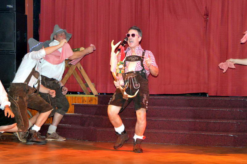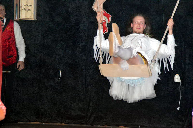 Traditionell wurde der letzte Auftritt innerhalb der Tombola durch das Männerballett gestaltet. Die Darbietung war ein bunter Strauß an einzelnen Auftritten, die miteinander verwoben wurden. Ilka Bause (Karina Wermann) moderierte die Sendung "Bauer sucht Frau" und stellt auch ein paar besonders stattliche Exemplare dieser Gattung Mensch vor. Um sich besser zu präsentieren, zeigten diese einen "Manteltanz", der zwar sehr zur Erheiterung des Publikums, aber nicht zu Heiratsanträgen der Närrinnen geführt hat. Den Abschluss bildeten ein paar bayerische (zumindest auf jeden Fall alpenländische) Jungs mit einem Tanz, bei dem als Gastsänger Andreas Gabalier (Andreas Vollstädt) auftrat und ein wahrhafter Engel mit wehendem Haar über die Bühne schwebte.