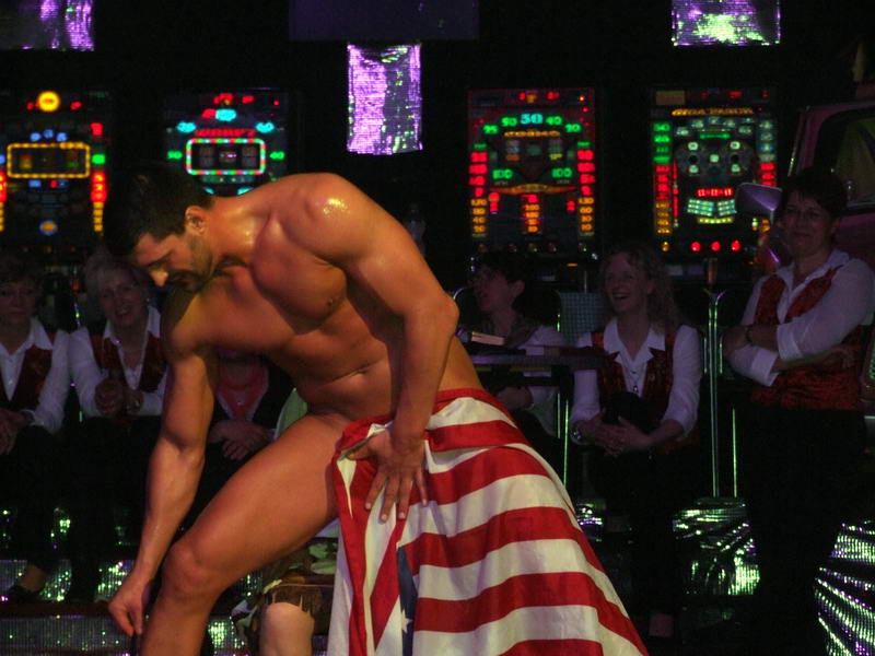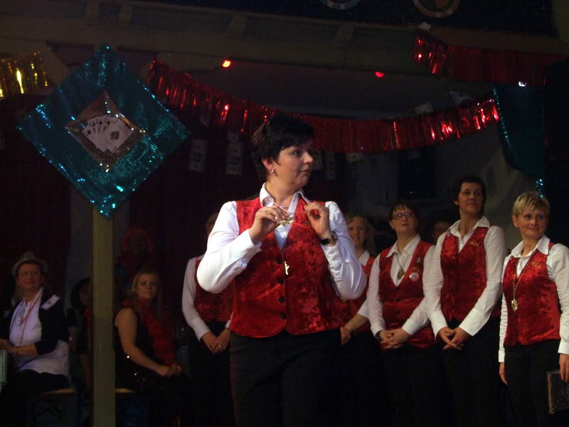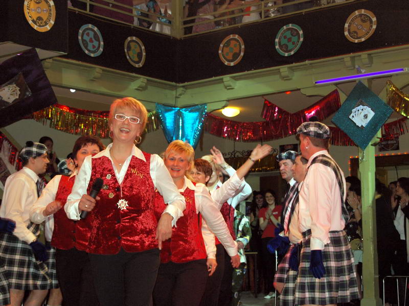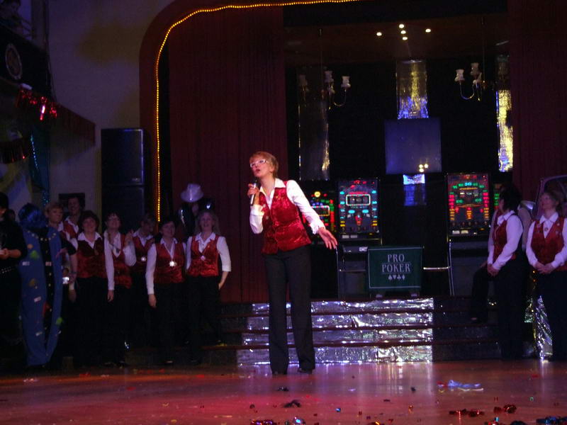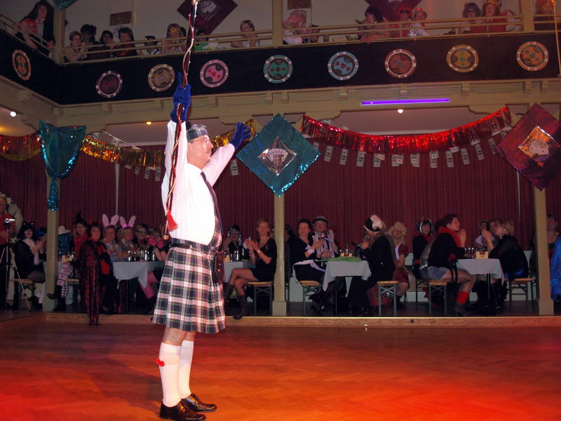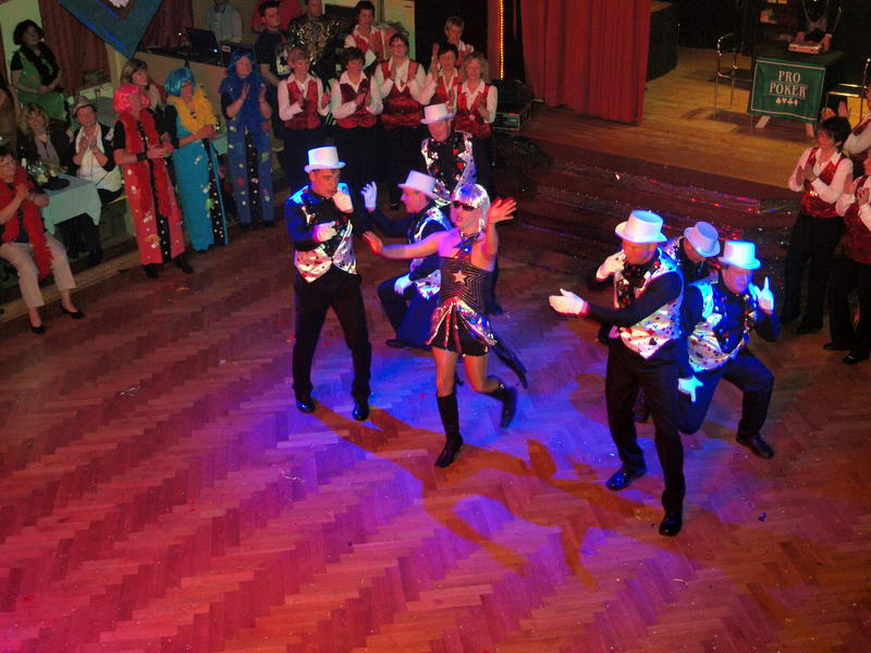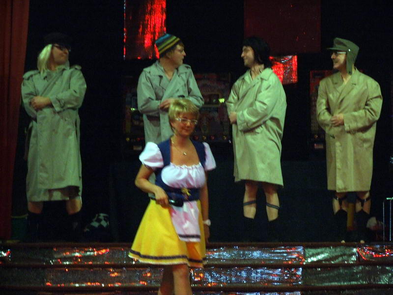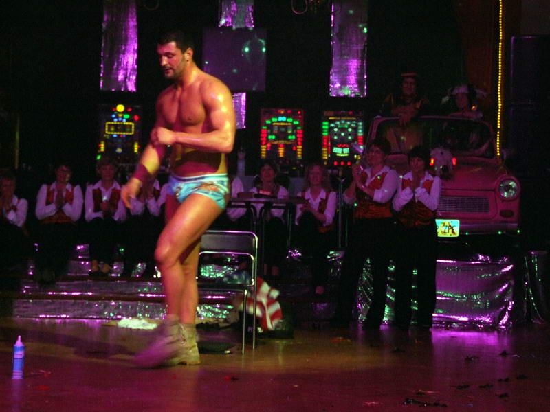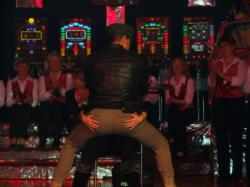 Das Highlight, auf das viele der anwesenden Närrinnen jedes Jahr wieder warten, war dann der Stripper. Er kam in diesem Jahr als Polizist mit dem Gardemaß von 1.94m in den Saal. Am Anfang gab es noch ein paar Probleme, ein 'Bond'-Girl zu finden. Da schnappte er sich kurzerhand eine Frau vom Bedienungspersonal. Anfangs etwas geschockt machte es ihr dann doch Spaß. Auch die anderen Frauen, die er sich für seine Show aussuchte, machten (zumindest äußerlich) gut mit.