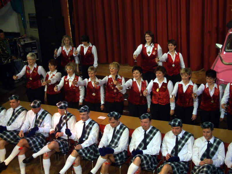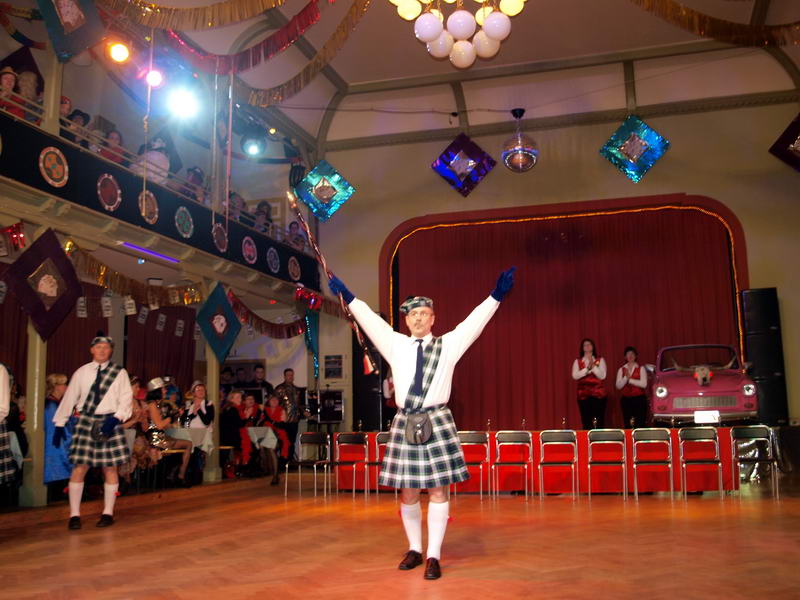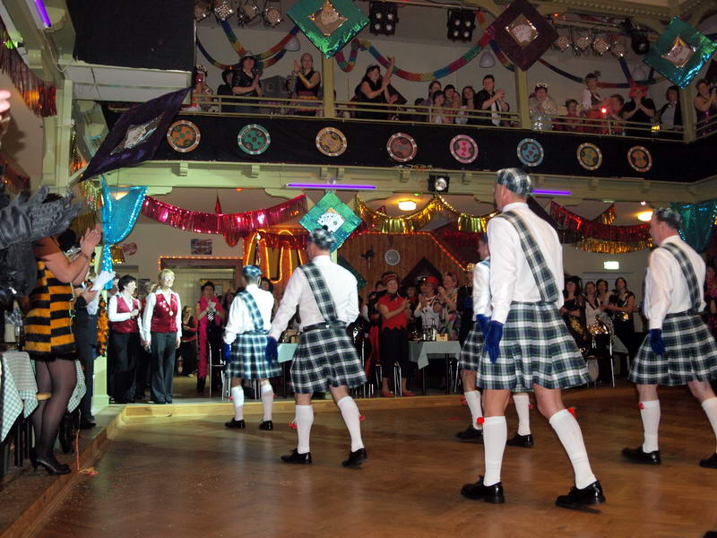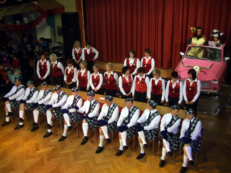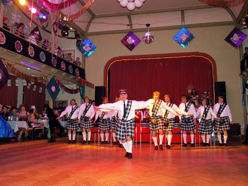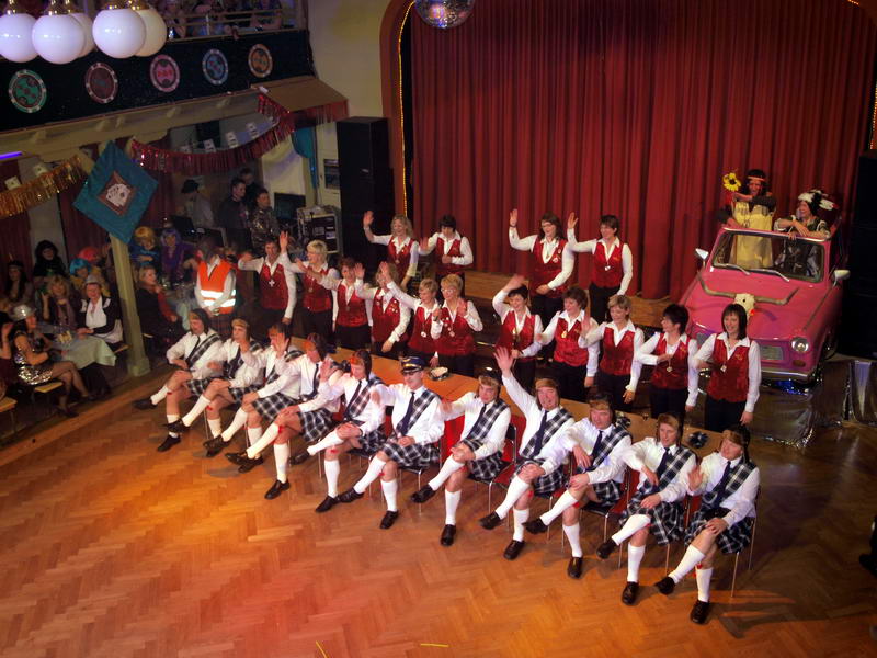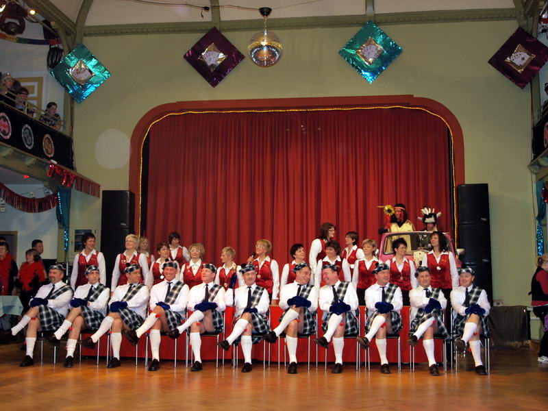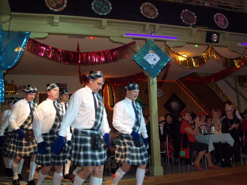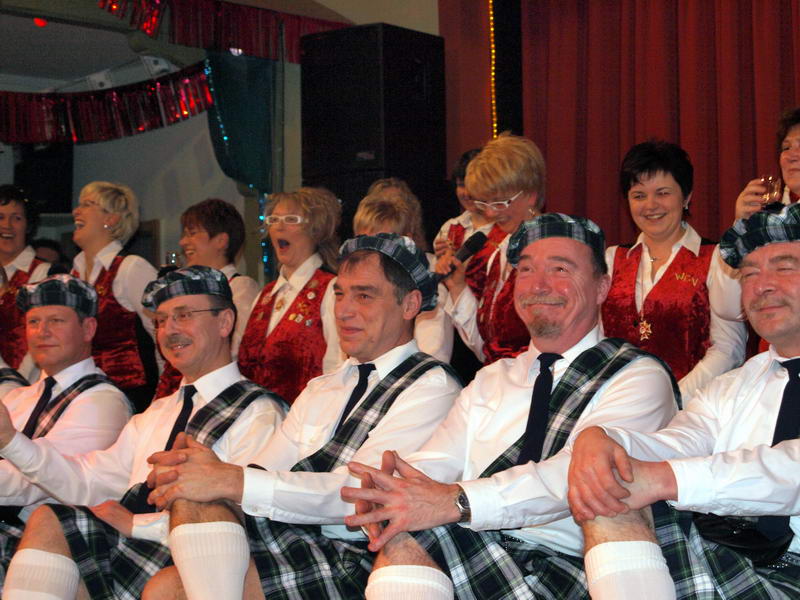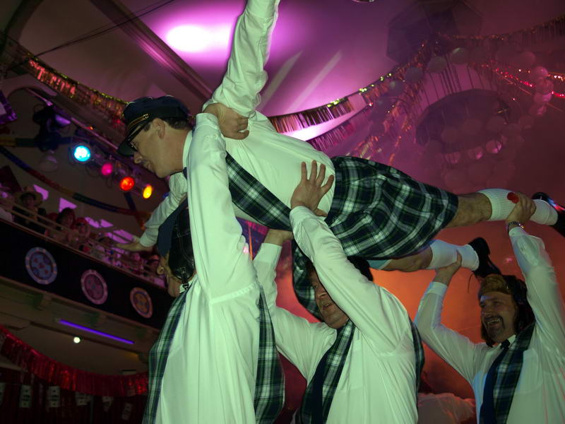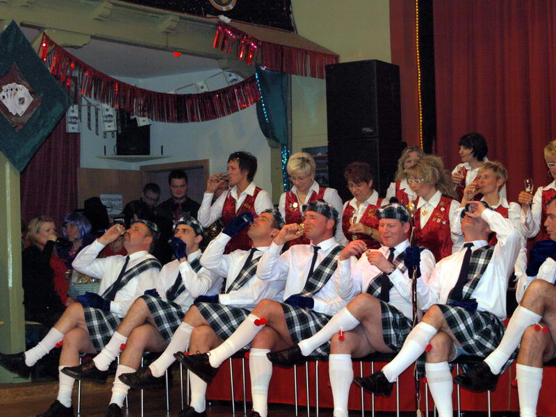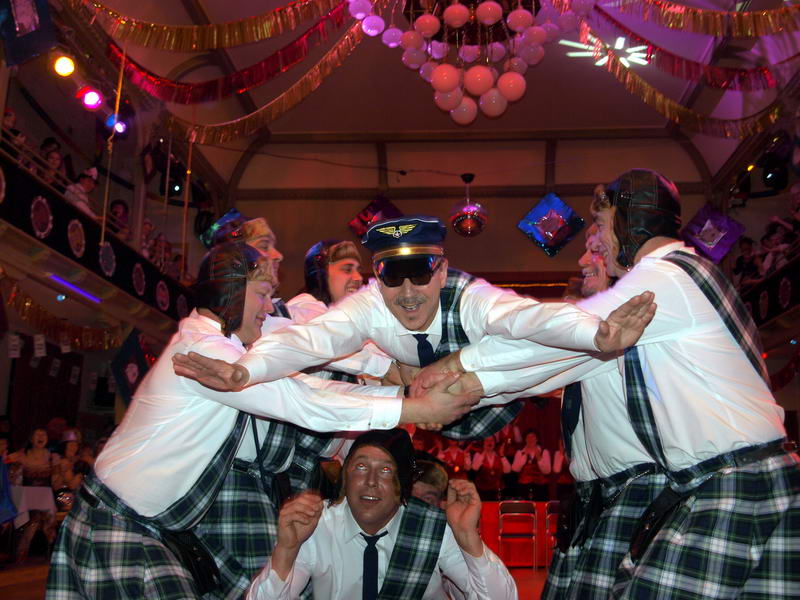 Wie schon zur Tradition geworden, war auch dieses Mal verkehrte Welt im Wechselburger Schützenhaus. Das Männerballett trat als Funkengarde im Schottenkostüm und die Gruppe der Waschweiber als Elferrat auf. Da war schon von Beginn an volle Stimmung im Schützenhaus. Schier überkochen wollte diese, als das Männerballett ihren "Gardetanz" der 41. Saison mit ihrem "Fliegerlied" präsentierte.
