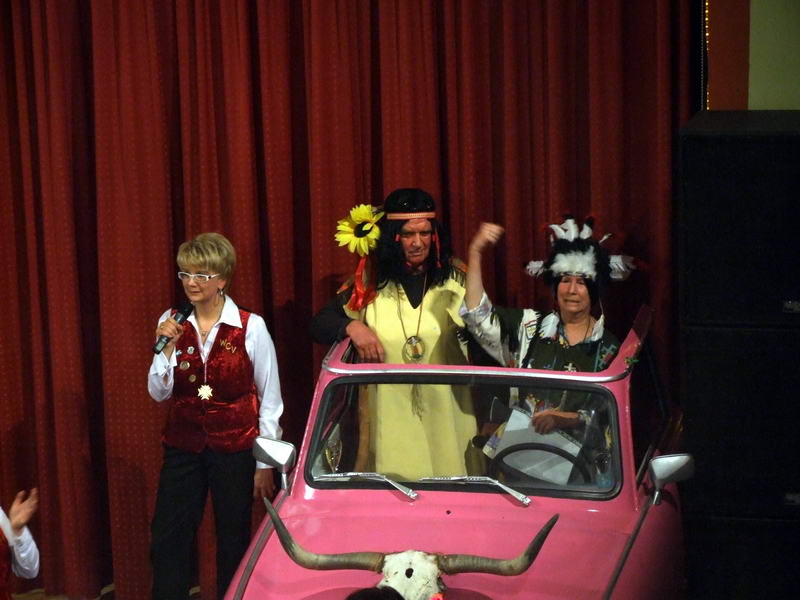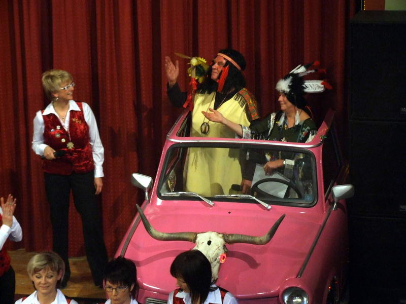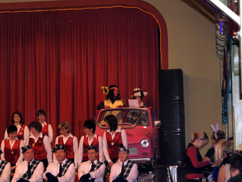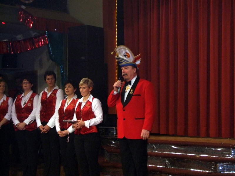 Danach gab es noch einen (ungeplanten) Auftritt von unserem "Kieselsteinchen" (Gerd Wagner). Er hatte beim letzten Weiberfasching mit durch das Programm geführt und konnte in diesem Jahr beruflich bedingt nicht früher beim Weiberfasching erscheinen. Aber, sein Auftritt als supergroße Rothaarige war schon wieder spektakulär. Vielleicht klappt es ja im nächsten Jahr wieder mit einem aktiven Auftritt beim Weiberfasching.