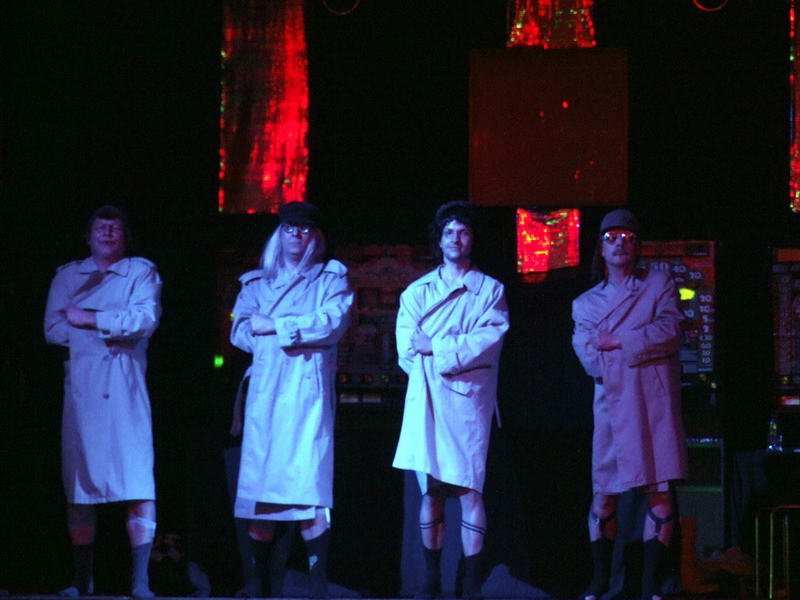 Den Anfang machte eine 'Gemeinschaftsproduktion' des Männerballetts und der Waschweiber. Die Männer kamen zum Thema "Bauer sucht Sau Frau" in den Saal. Das dies bei den schauspielerischen Fähigkeiten von Sven Benndorf & Co. für viel Heiterkeit sorgte, kann sich jeder vorstellen, der schon einmal zum Fasching beim WCV dabei war und Sven in voller Aktion erlebt hat. Nach dem 'Einlauf' in den Saal wurde dann ein Manteltanz präsentiert, bei dem alles gezeigt, aber nichts gesehen werden sollte. Das ist den Vieren super gelungen.