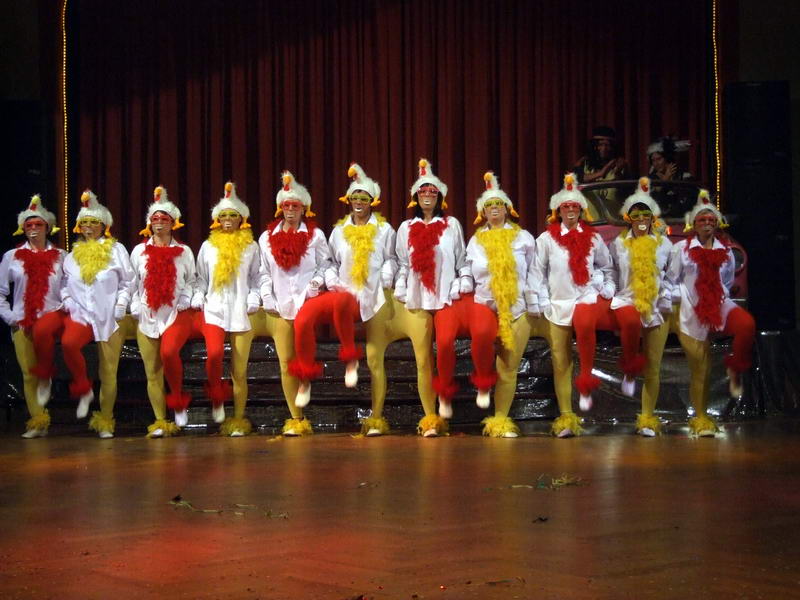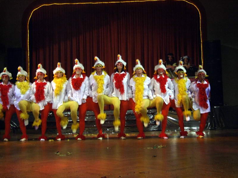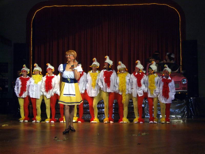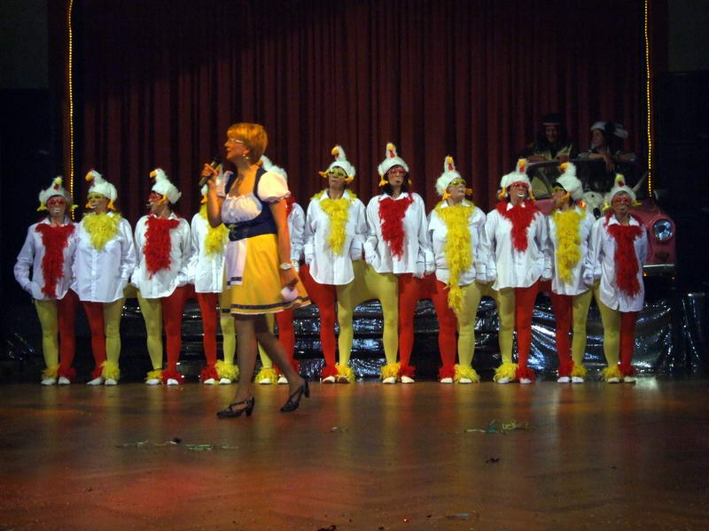 Passend zum Thema "Bauer sucht ..." kamen dann ein paar wilde Hühner (die Waschweiber des WCV) in den Saal, um einen Hühnertanz zu zeigen. Dabei musste man nicht nur einmal hinsehen, um zu begreifen, was da falsch war oder wie das wirklich funktionierte.
