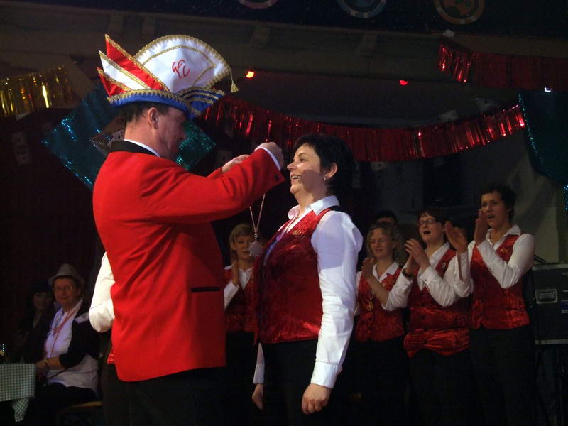 Vor dem nächsten Programmpunkt gab es erst einmal einen offiziellen Höhepunkt: Im vergangenen Jahr wurde - damals noch ausgewählt von den (männlichen) Großkreuzträgern der neue "Ehrenorden des weiblichen Elferrates" (eigentlich das weibliche Gegenstück zum Großkreuz der Männer) ins Leben gerufen. Die weiteren Ordensträgerinnen werden von den Frauen selbst ausgewählt. Dies geschah in einer absolut geheimen Abstimmung.