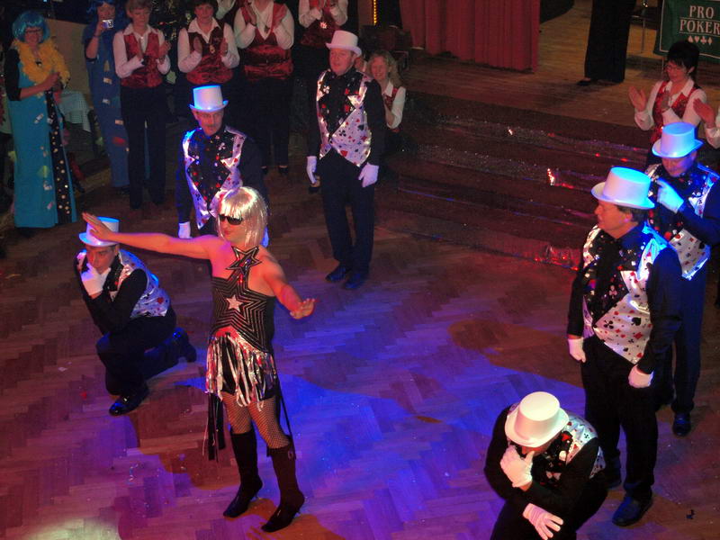 Nach dieser Ehrung ging es weiter im eigentlichen Programm. Jetzt kam das Männerballett mit ihrer Interpretation von "Poker Face", einem Auftritt aus dem aktuellen Programm des WCV. Das tanzende Kerle beim Weiberfasching gut ankommen, kann sich jeder sicher vorstellen.