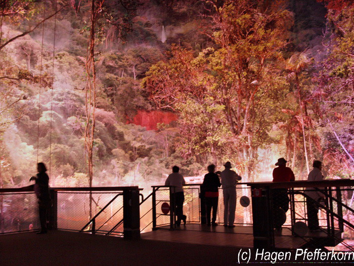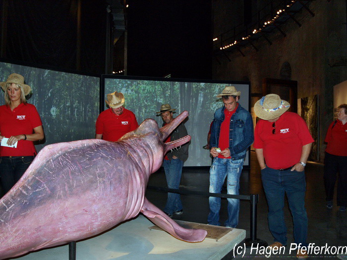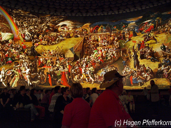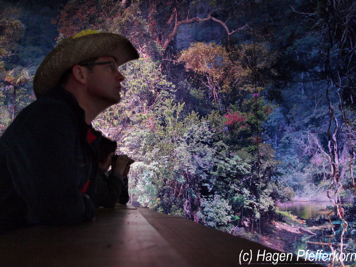 Vom Zwenkauer See ging es dann zum ehemaligen Gasometer in Leipzig, dem heutigen Panometer. Dort gab es das mittlerweile dritte Monumental-Panorama-Gemälde des Künstlers Asisi mit dem Thema "AMAZONIEN" zu sehen. Ein wirklich faszinierender Anblick. Man konnte einen kompletten Tagesablauf vom Sonnenaufgang über den ganzen Tag, den Sonnenuntergang und die Nacht erleben - und das alles innerhalb einer knappen Viertelstunde. Waaahhnsinn! Auch der Film über das - wie man heute sagt - "Making Of" war beeindruckend. Zusammengesetzt hatte der Künstler (der übrigens an diesem Tag persönlich im Panometer anwesend war) das Gesamtpanorama aus insgesamt 36.000 Bildern, die er mit seinem Team innerhalb von drei Jahren im Amazonasgebiet aufgenommen hatte.