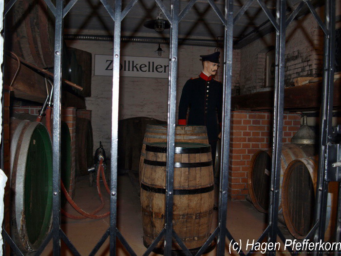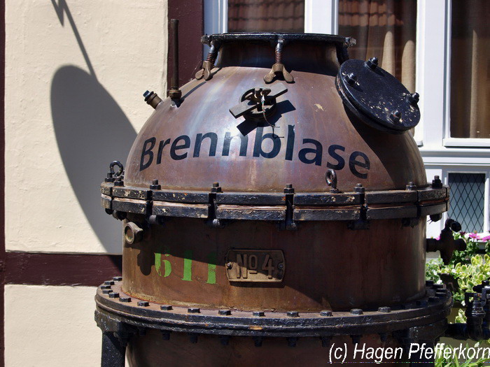 In der Nordhäuser Brennerei stellten wir dann fest, dass neben uns noch eine zweite, wenn auch kleinere, Gruppe anwesend war. Daher gab es dann auch zwei Führerinnen. Eine sehr junge und eine im mehr mittleren Alter. Letztere übernahm dann freiwillig die Roten (nicht politisch, sondern wegen unserer roten Vereins-Poloshirts). Entweder wusste sie nicht, was sie damit tat oder sie wollte die jüngere vor dem Schicksal bewahren. Bei uns ging es mit Sicherheit nicht so lahm zu, wie in der anderen Gruppe, die - obwohl sie viel weniger Leute als unsere Gruppe waren - mit Sicherheit viel mehr Jahre zusammenbekommen haben. Aber unsere Führerin hatte es nicht leicht, sich gegen unseren karnevalistischen Humor durchzusetzen. Zur Hälfte der Führung versuchte sie es dann auch mit Bestechung, um uns ruhig zu stellen. Noch lange vor der eigentlichen Verkostung gab es für uns eine Sonderrunde Nordhäuser Doppelkorn zum Vorkosten. Doch geholfen hat es nicht viel. Wie geplant bildete dann die Schnapsverkostung den Abschluss der Brennereibesichtigung. Dabei konnten wir feststellen, dass in Nordhausen nicht nur Doppelkorn gebrannt wird. Wenn mein Gedächtnis zu diesem Zeitpunkt noch richtig funktioniert hat (und mich mein Erinnerungsvermögen nicht verlassen hat), waren es insgesamt sechs oder sieben Sorten, die wir verkostet haben.