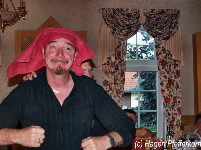 Nach der Brennereibesichtigung ging es dann nach Bielen ins Hotel. Nach dem Einchecken hatte jeder Zeit, sich noch einmal etwas für den Abend frisch zu machen. Ab 18.00 Uhr stieg dann die Abendfete. Wie schon aus den letzten Jahren gewohnt, war dazu ein Alleinunterhalter engagiert wurden. Schade an dem Abend war eigentlich nur, dass die Fete trotz schönem Wetters nicht - wie in der Ausschreibung angekündigt - im Freien auf einer Terrasse stattfand. Im Saal des Hotels war es einfach zu heiß und zu stickig. Aber dass war auch schon das einzige Negative des Abends.