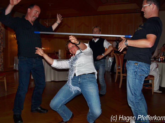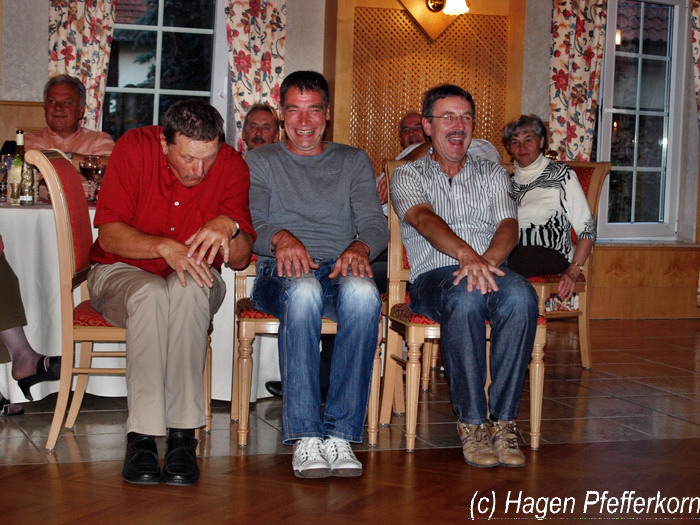 Der Alleinunterhalter war Superklasse. Und auch über unseren Christian - den Kellner unsers Saales - konnte sich keiner beschweren. Das war ein positives Gegenstück zur Bedienung bei unserer letzten Ausfahrt. Natürlich überließen wir als Karnevalisten die Gestaltung des Abends nicht allein dem Alleinunterhalter. Einige trugen eigene Darbietungen vor. Und auch sonst gab es reichlich zu lachen. Selbst eine beim Kassatschok im Schritt zerrissene Hose sorgte bei allen Anwesenden - inkl. dem Betroffenen - für Heiterkeit. Und - wir bereiten uns ja auf die nächste Faschingssaison vor - auch eine Polonaise fehlte an diesem Abend nicht. Angeführt - wie konnte es anders sein- von Sven. Weit nach Mitternacht hatten dann auch die Letzten den Weg auf ihr Zimmer gefunden. Denn früh sollten ja alle wieder fit sein für den zweiten Teil der Vereinsausfahrt.