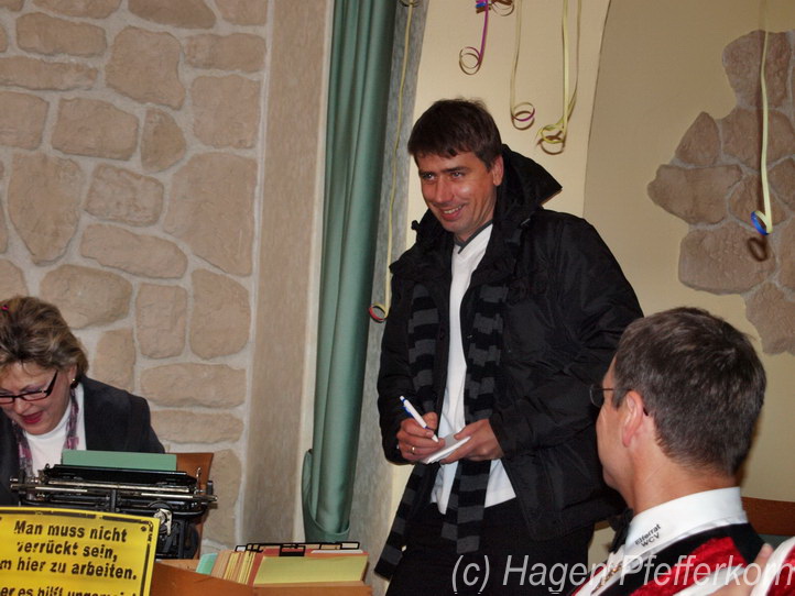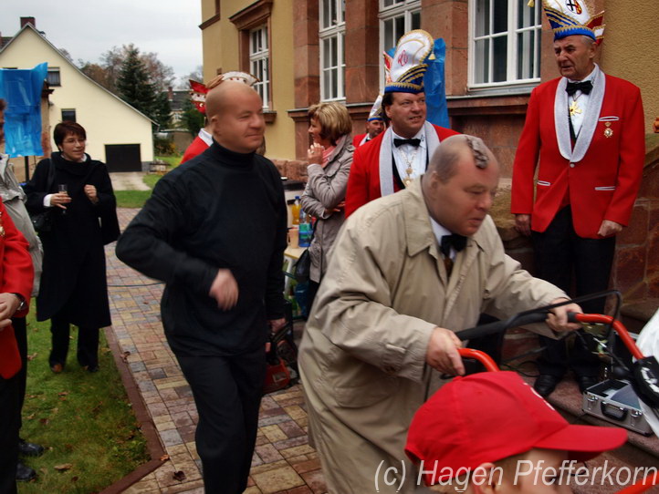 Kurzzeitig hatte man im Elferrat sogar darüber nachgedacht, Ihr mit allen Anwesenden einen Besuch abzustatten Vor ein paar Jahren sind wir ja schon einmal mit ca. 40 Teilnehmern abends mit einem Bus zum Rochlitzer Rathaus gefahren, um dem damaligen Bürgermeister, Herrn Knappe, einen überraschungsbesuch abzustatten. Doch diese überraschung wäre dann doch vielleicht etwas zu viel gewesen. Somit warteten die Meisten der Anwesenden dann halt auf die Rückkehr der Gratulanten. Das persönliche Gratulieren kann man denn ja spätestens am kommenden Samstag zur ersten Auftaktveranstaltung nachholen.