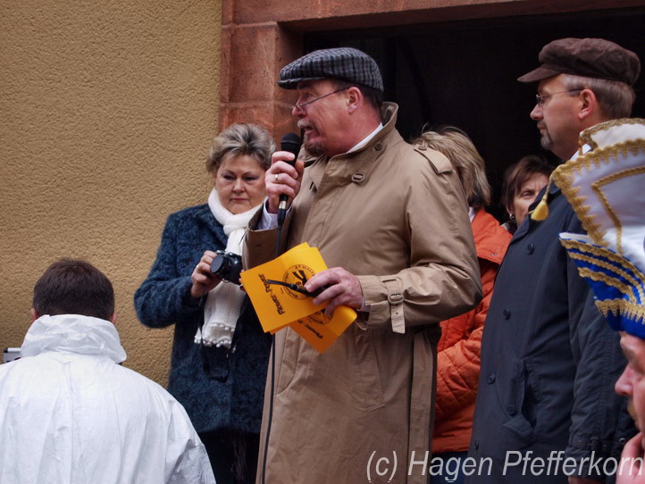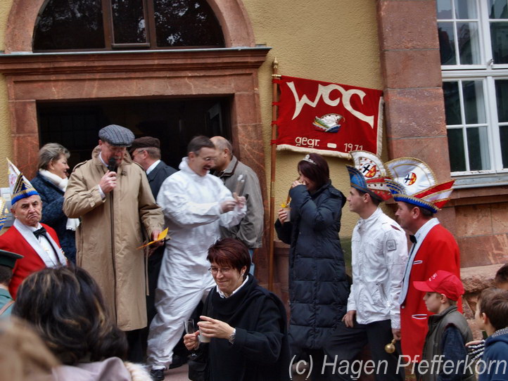 Bereits um 10.00 Uhr trafen sich die Carnevalisten des WCV im "Sächsischen Hof" (das Gastwirts-Ehepaar hatte freundlicherweise extra für unseren Rathaussturm schon so zeitig geöffnet - dafür gilt natürlich unser Dank), um noch die letzten Vorbereitungen für den Rathaussturm zu besprechen.