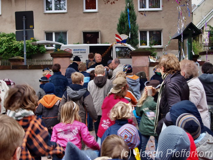 Vorher ging der Zug vom „Sächsischen Hof“ bereits an der Wechselburger Grundschule vorbei, wo sich alle Schülerinnen und Schüler dem Zug zum Rathaus anschlossen. Natürlich wurden die Schüler für diese patriotische Tat mit reichlich Süßigkeiten belohnt.