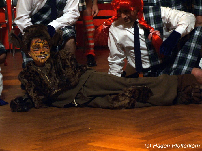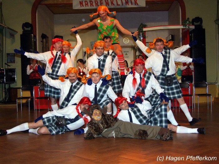 Den Abschluss dieses ersten Programmteiles bestritt dann das Männerballett - in diesem Jahr verstärkt durch Adrian Wild - mit einem Pippi Langstrumpf-Tanz .