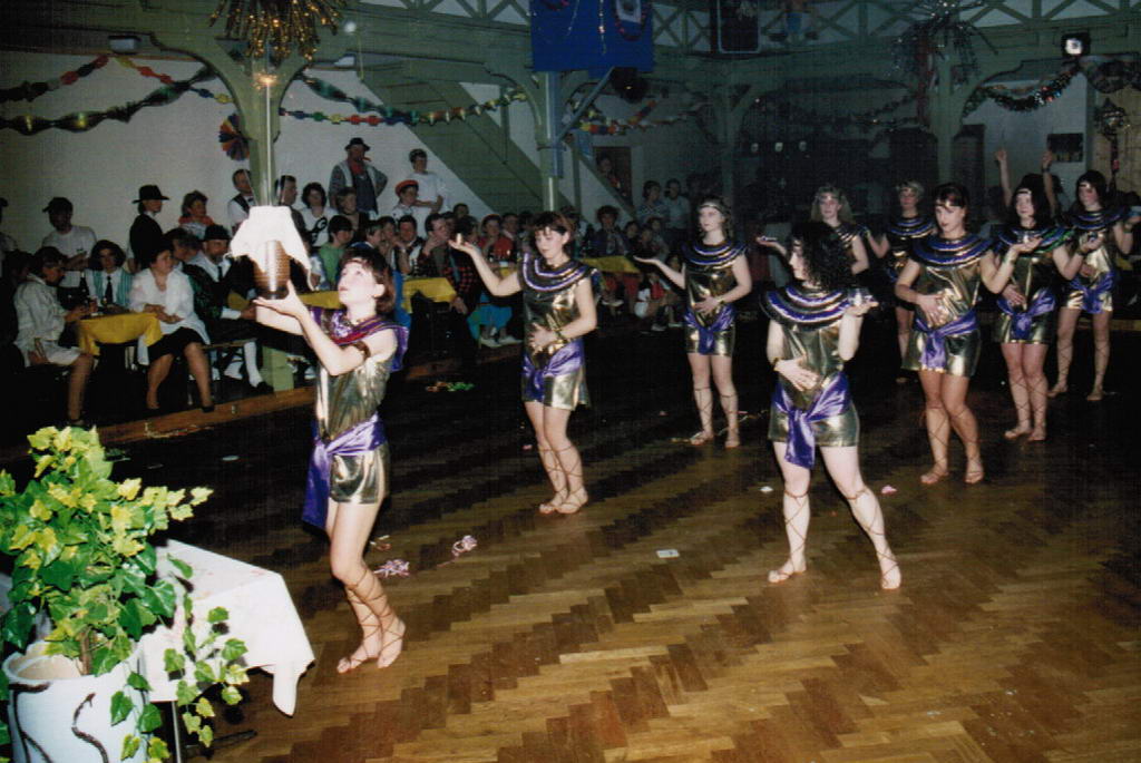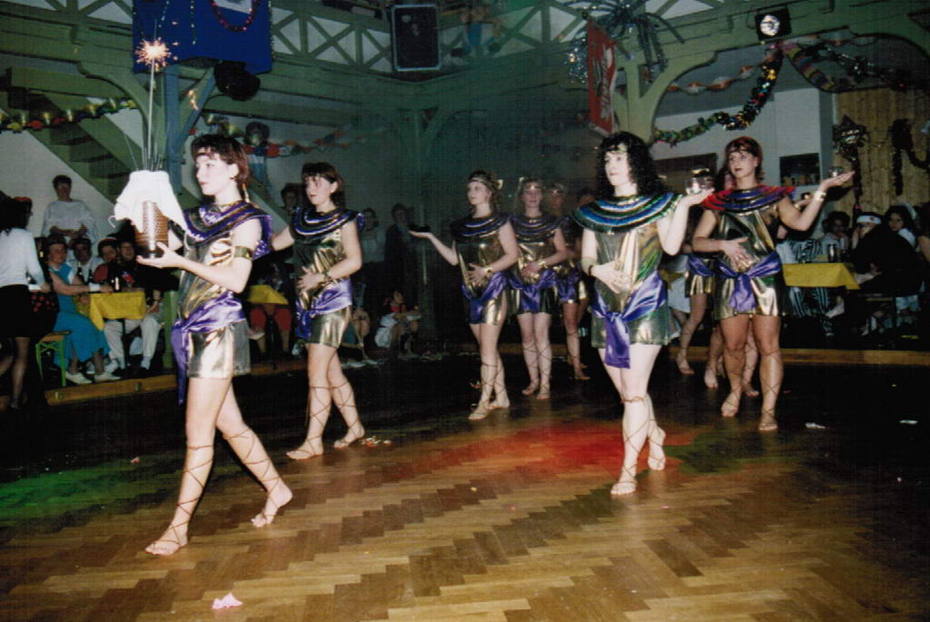 Um seine Stimmung wieder etwas anzuheben, traten nunmehr die Tempeltänzerinnen vor den Imperator. Vorgetragen von den Mädchen der Prinzengarde war dies sicher ein Höhepunkt des Abends. Vor allem der Wechsel aus dem romantischen Anfang zur flotten Discomusik, untermalt von den spitzenmäßig eingeübten Tanzfiguren hat beim Publikum wahre Beifallsstürme ausgelöst.