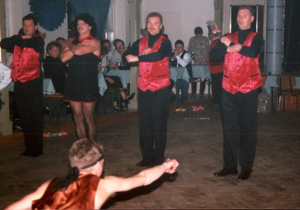 Den Höhepunkt und Abschluß des Programmes bildete der Auftritt unseres Männerballetts. Aufgeführt wurde der Tanz aus "Lord of the dance". Sowohl durch die Ausstrahlungskraft als auch durch die Exaktheit der Darbietung wurde das Publikum zu waren Beifallsstürmen hingerissen.
