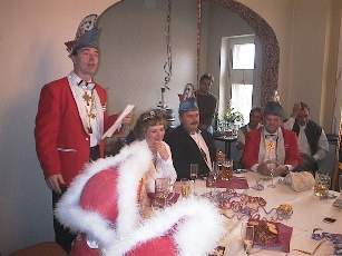 Am Abend trafen dann die Karnevalisten zu einem wichtigen Zusammensein (Gelage) wieder im "Sächsischen Hof" zusammen. So klang dieser Tag gemütlich aus, bevor sich alle dann auf die öffentlichen Elferratssitzungen an den kommenden beiden Wochenenden vorbereiteten.