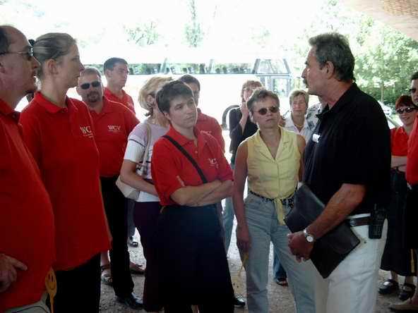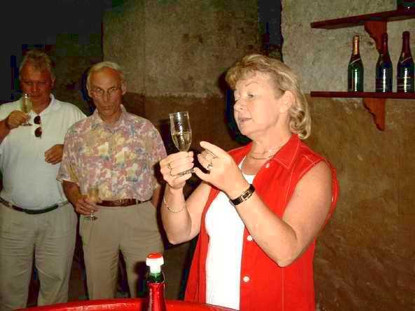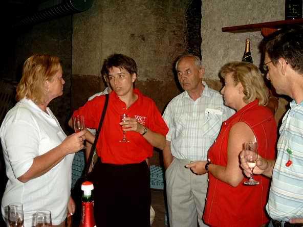 Am nächsten Tag starteten wir mit der Besichtigung in der "Rotkäppchen"-Sektkellerei in Freyburg. Ingo durfte dann einmal testen, wie man in ein großes Fass gelangt, um es zu reinigen. Er hatte zuerst gedacht, die Gegenseite wäre offen. - Doch weit gefehlt, er sah aus, wie in ein Aquarium eingesperrt. Zur Sektkellerei gehört natürlich auch eine (kleine) Sektverkostung mit dazu. Hier wurde uns erst einmal beigebracht, wie man Sekt richtig trinkt. Jahrelang haben wir's nach den Faschingsveranstaltungen getan - und immer falsch. Aber so können wir wenigsten sagen: "Beim WCV - da haben wir was gelernt!"