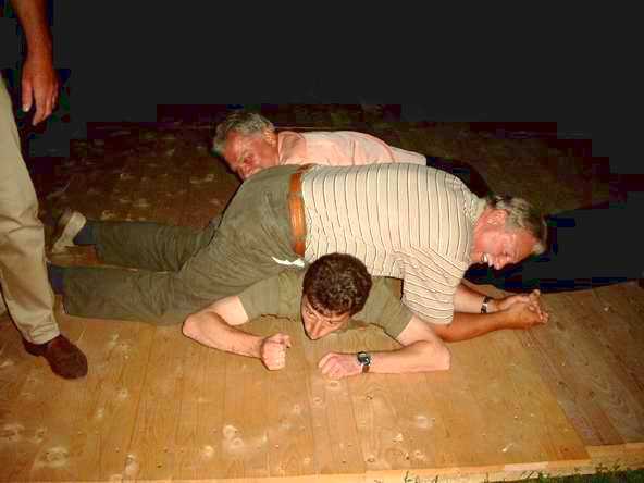 Ganz ohne Weiber ging es dann aber doch nicht. In einem Annäherungstanz versuchte man, sich näher zu kommen. Nach dem Tanz zur Melodie "Lasst uns schmutzig Liebe machen" ging es dann um die berühmten "20 Zentimeter" des Mannes (siehe das letzte Bild dieses Berichtes).