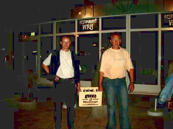 Leider war unser sogenanntes 3-Sterne-Hotel bei der Ankunft des ersten Teils unserer Mannschaft (der andere Teil war noch auf das Kirsch-Fest gewandert) im Hotel kurz vor Mitternacht nicht in der Lage, uns noch etwas zu Trinken aus zu schenken. Glücklicherweise hatte unser Busfahrer noch ein paar verkäufliche Bier- und Sektreserven. diese wurden dann vor dem Hotel geleert.