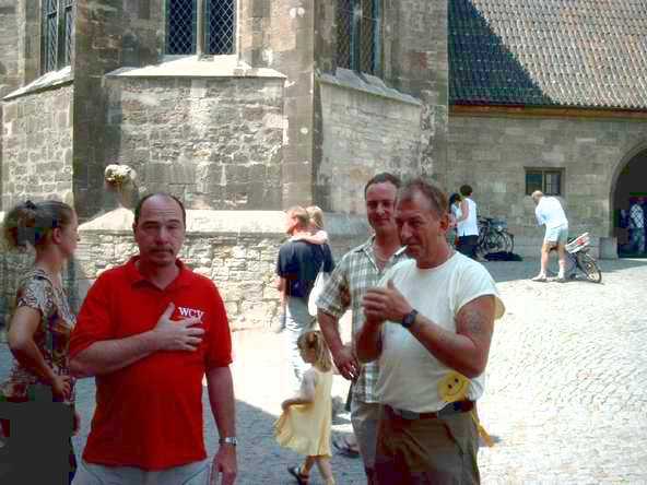 Auf der Rückfahrt hat Jana wieder die Frauen mit männerunfreundlichen Wortbeiträgen beglückt. Aber die Männer nehmen's ja nicht übel. - sind wir nun mal! In Naumburg war die aus dem Kreuzworträtsel bekannte "Uta" - oder besser gesagt der Naumburger Dom selbst das Ziel der Besichtigung. Beim Warten vor der Dom-Besichtigung zeigten sich bei Einzelnen die ersten Erschöpfungserscheinungen.