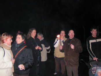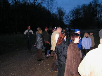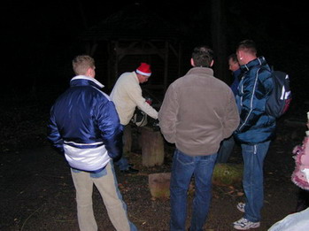 Nach ein paar alkoholischen Aufwärmrunden ging es - getreu dem Motto, dass der Herr vor den Lohn die Arbeit gesetzt hat – los mit der Wanderung am Fuße des Rochlitzer Berges. Doch schon nach wenigen hundert Metern war wieder eine Pause angesagt (der zuvor genossene Sprit war alle!). Auch kurz vor dem ersten Etappenziel musste dann noch ein Trinkerpause eingelegt werden.
