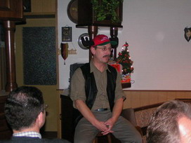 Unterbrochen wurde dies von zwei sehr gut gelungenen Einlagen unseres Andreas „Mäcki“ Vollstädt. Als erstes führte er unter Zuhilfenahme mehrerer Anwesender ein Theaterstück auf. Erstaunlich dabei war vor allem, wie gut Michael M. mit seiner – für ihn untypischen – zurückhaltenden Rolle zurecht kam. Einige Zeit später testete er die Wirkung des Alkohols auf das Sprech- und Merkvermögen von vier Probanten aus. Leider musste er nach fünf von insgesamt 299 Testreihen den Versuch abbrechen, da er sich selbst die Begriffe auch nicht mehr merken konnte. Macht nicht’s, Spaß hat’s trotzdem gemacht.