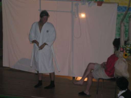 Der nächste Programmteil war eine eindrucksvolle Demonstration über das Duschverhalten des "Homo Sapiens Wechselburgensis" in stark weiblicher Auslegung. Allerdings erfolgte die Darstellung - typisch zum Wechselburger Weiberfasching - mit vertauschten Rollen: Die Frau wurde durch Ingo Lose und der Mann durch Conny Hentschel dargestellt. Gleich im Anschluss gab sich Cptn. Kork die Ehre mit seinem Space-Taxi.