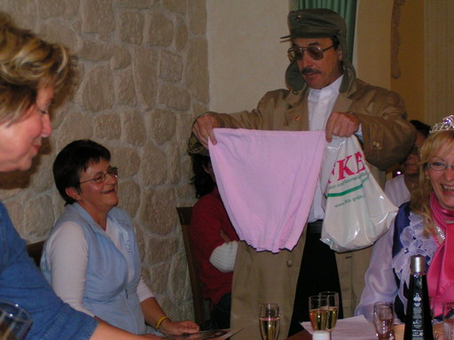 Von der Gemeindeverwaltung wurde dann an alle - nicht nur die weiblichen - anwesenden eine Blase-Übung gestellt, bei deren Lösung die Bürgermeisterin jedoch zu nichtgenehmigten technischen Hilfsmitteln griff.