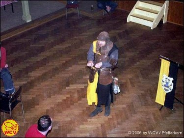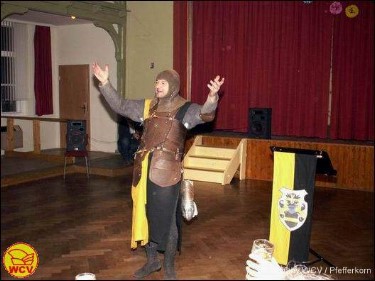 in der 36. Saison des WCV. Nachdem sie aus den Händen der Bürgermeisterin, Frau Naumann, symbolisch noch einmal (die offizielle Übergabe war ja bereits um 11.11 Uhr im Rathaus) den Rathausschlüssel übergeben bekommen haben, verkündete Prinz Andreas III. das Motto der 36. Saison: