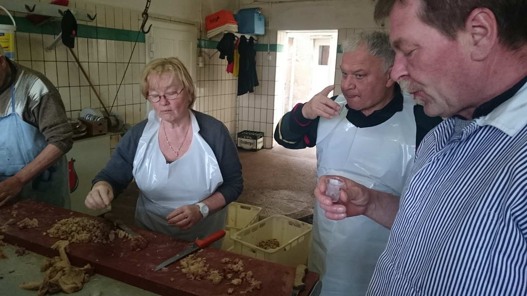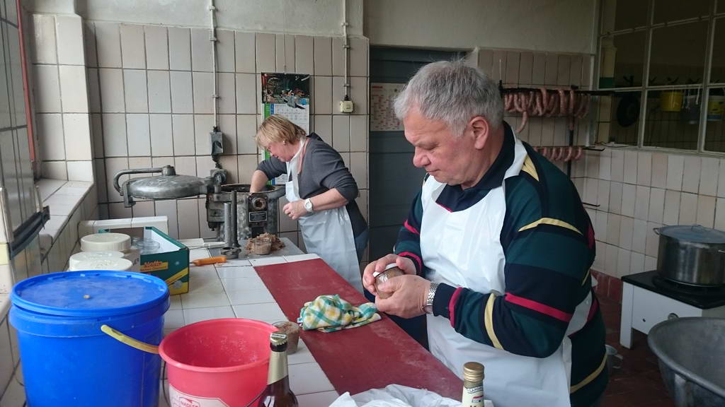 Seit mittlerweile elf Jahren gibt es bei uns die Tradition des Schlachtfest / Wurstmachen. Da wir damit ein Jahr ausgesetzt hatten, war es 2015 das zehnte Mal, das sich am Vormittag vor der Jahreshauptversammlung und des anschließenden Frühlingsfestes ein paar Vereinsmitglieder in der Fleischerei von Torsten Knorr einfanden. Dort wurde dann das Wunder der Verwandlung von Fleischbatzen zu leckerer Wurst vollzogen.