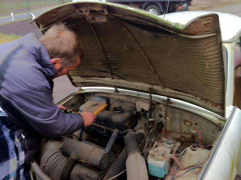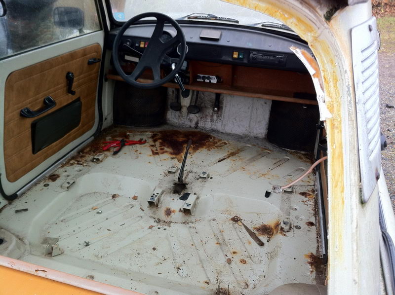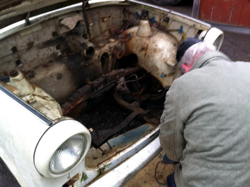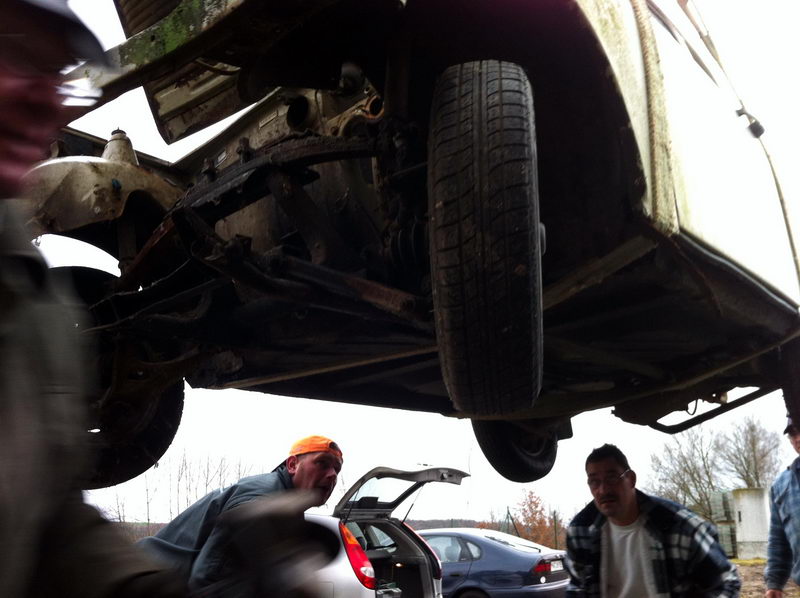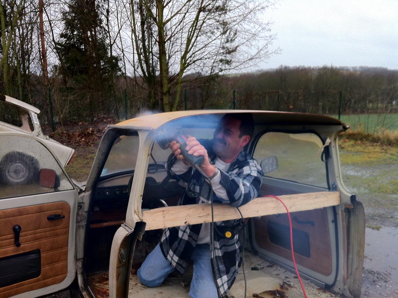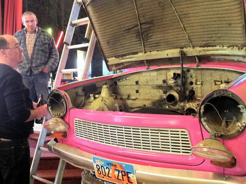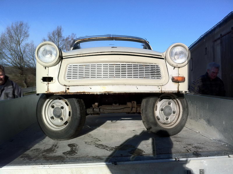Nachdem die Idee einmal geboren war (wir bauen auf de rBühne aus einem PKW-Vorderteil eine Prinzenloge) ging es an die Suche eines möglichen PKW. Am Ende standen zwei mögliche Fahrzeuge zur Auswahl. Die Wahl fiel dann auf eien Trabent, der uns freundlicherweise vom Autohaus Sturne in Rochlitz zur Verfügung gestellt wurde. Der Trabi hatte den großen Vorteil, dass wir das Vorderteil ohne zerlegen, oder ohne Umbau an Türen oder Fenstern im Schützenhaus auch in den Saal bekommen. Fast jedes andere Auto wäre für die örtlichen Begebenheiten zu groß gewesen.