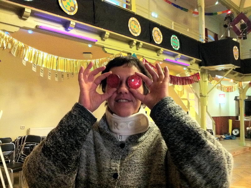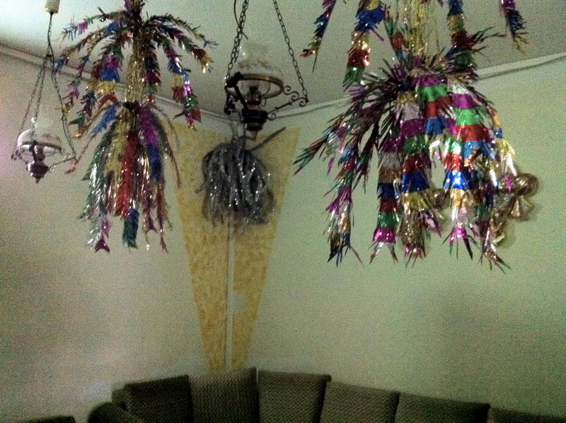 Neben dem Trabi als Prinzenloge und der allgemeinen Dekoration kam in diesem Jahr noch etwas ganz anderes zum Einsatz. an der Saaldecke wurden zwei große Spiegelkugeln installiert. Dabei handelte es sich um eine Idee von DJ Axel Schalk.
