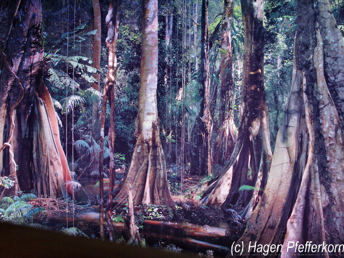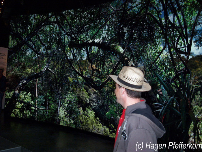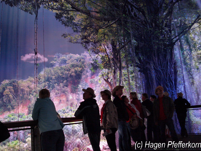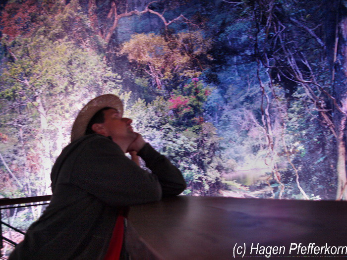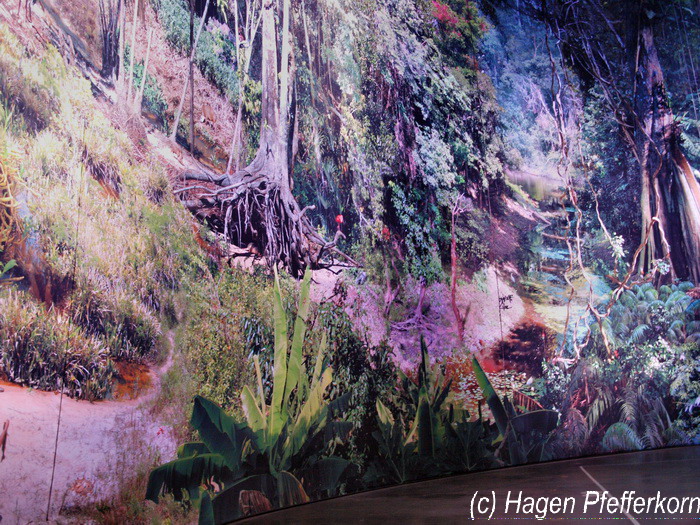 Vom Zwenkauer See ging es dann zum ehemaligen Gasometer in Leipzig, dem heutigen Panometer. Dort gab es das mittlerweile dritte Monumental-Panorama-Gemälde des Künstlers Asisi mit dem Thema "AMAZONIEN" zu sehen. Ein wirklich faszinierender Anblick. Man konnte einen kompletten Tagesablauf vom Sonnenaufgang über den ganzen Tag, den Sonnenuntergang und die Nacht erleben - und das alles innerhalb einer knappen Viertelstunde. Waaahhnsinn! Auch der Film über das - wie man heute sagt - "Making Of" war beeindruckend. Zusammengesetzt hatte der Künstler (der übrigens an diesem Tag persönlich im Panometer anwesend war) das Gesamtpanorama aus insgesamt 36.000 Bildern, die er mit seinem Team innerhalb von drei Jahren im Amazonasgebiet aufgenommen hatte.