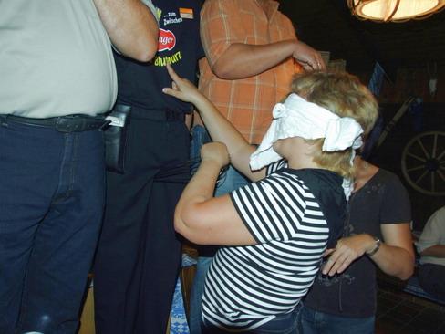 Bereichert wurde der Abend immer wieder durch "Wortbeiträge" des Hotelchefs. Aber auch der Alleinunterhalter glich sich bald dem Niveau der Veranstaltung an. Am Ende brachte auch er - animiert und unterstützt durch Volker Saupe - eine Einlage nach der Anderen.