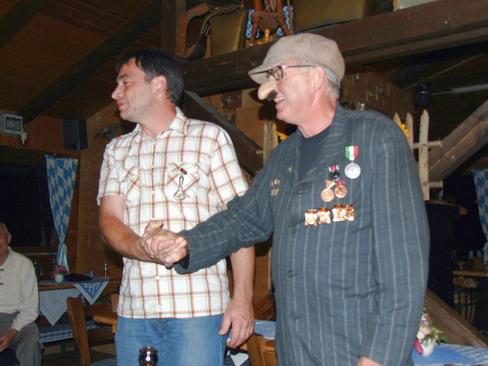 Zu guter Letzt überreichte er auch dem "Nemetzki mit der großen Klappe" den Flaschenöffnerorden am Band.